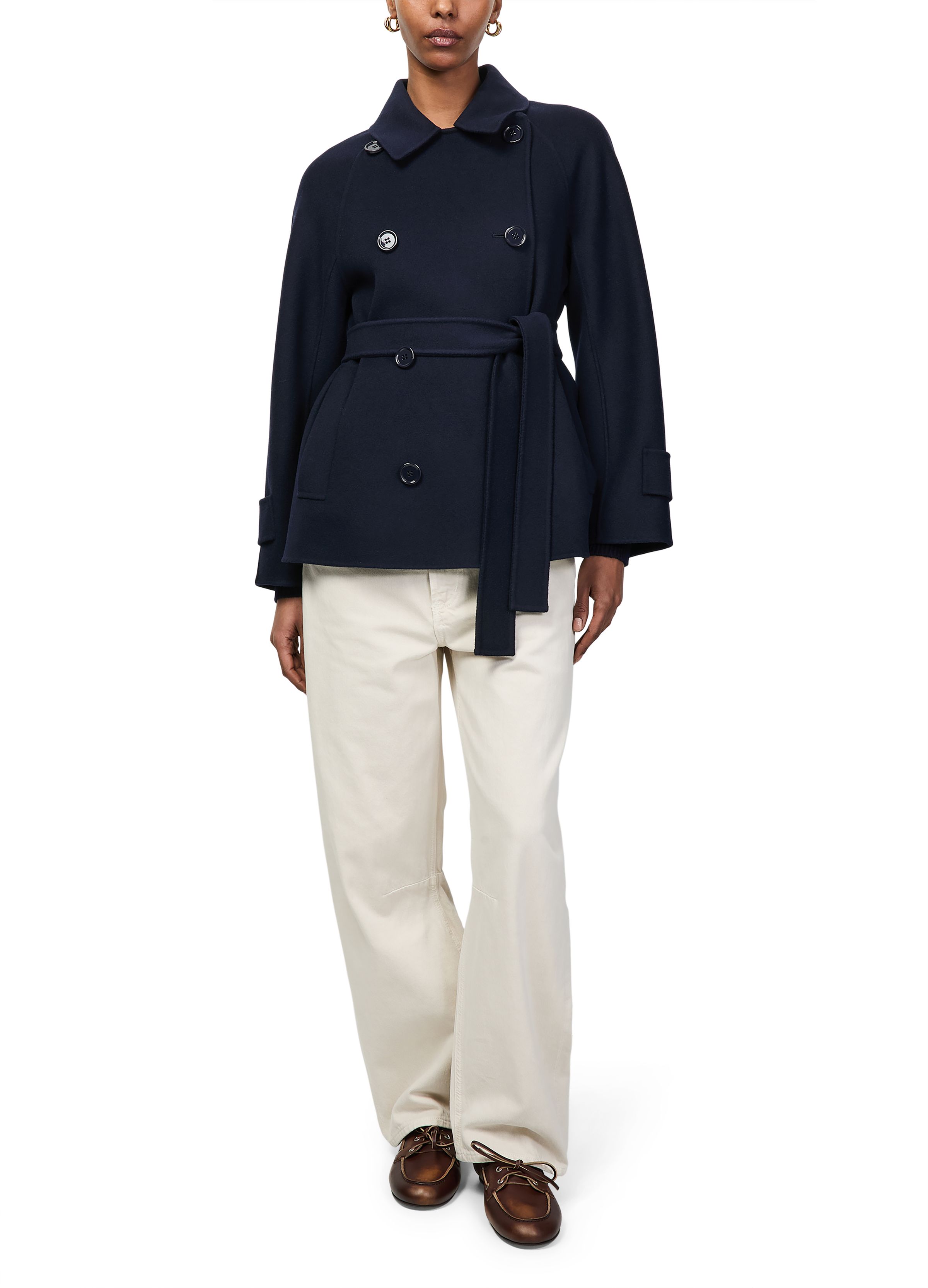 Belted short trench coat