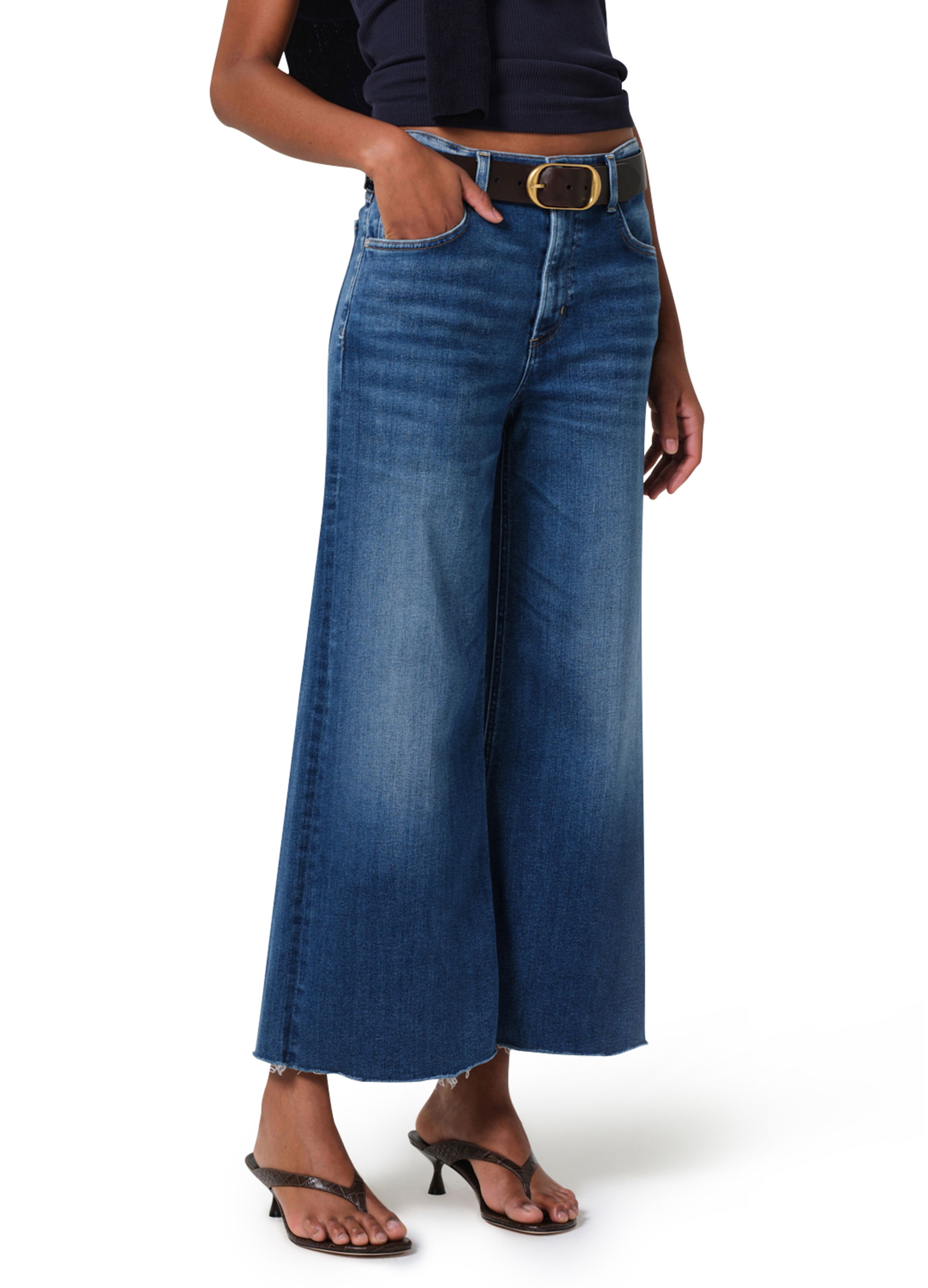 Lyra Cropped Wide-Leg Jeans - Blue