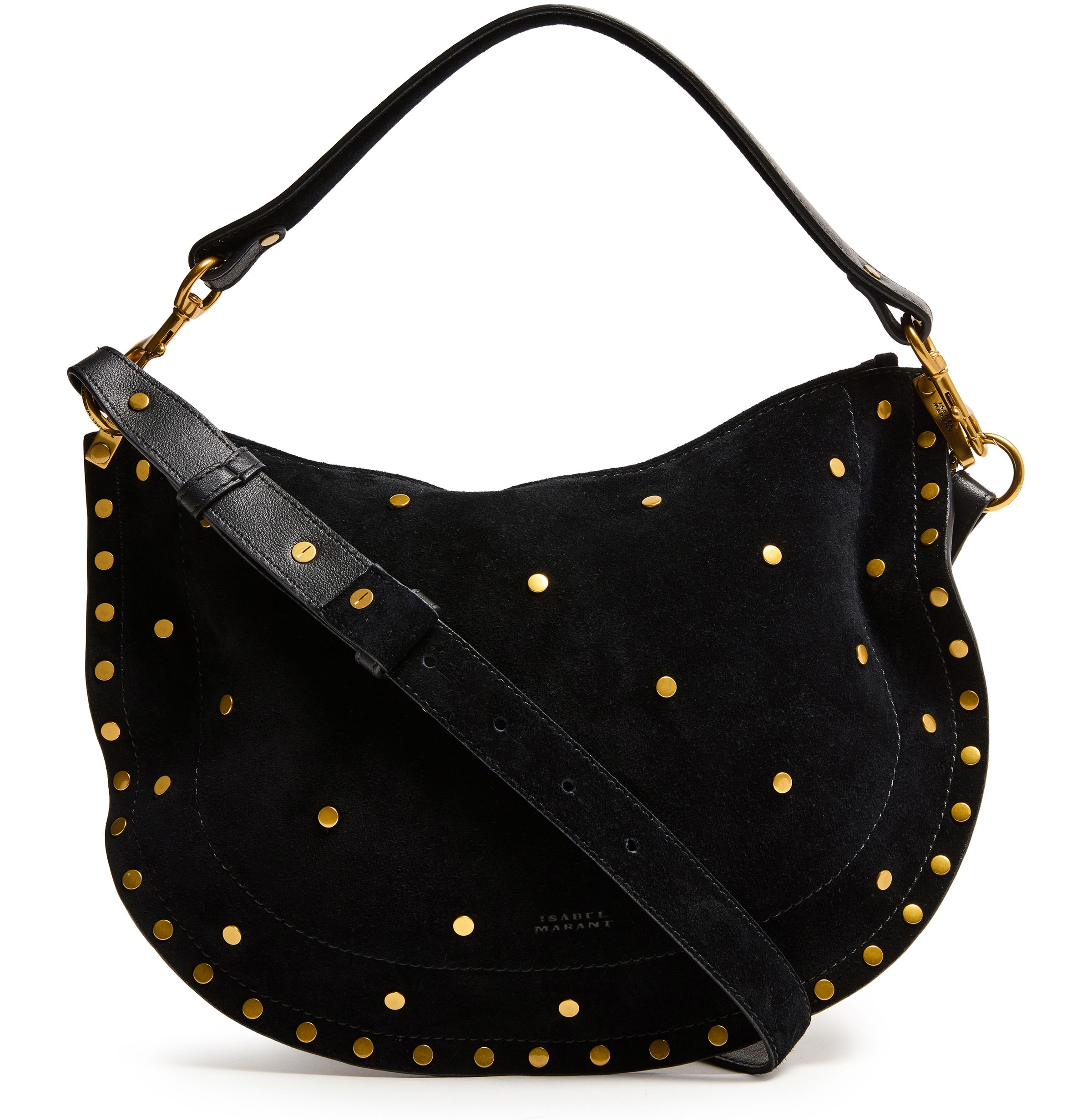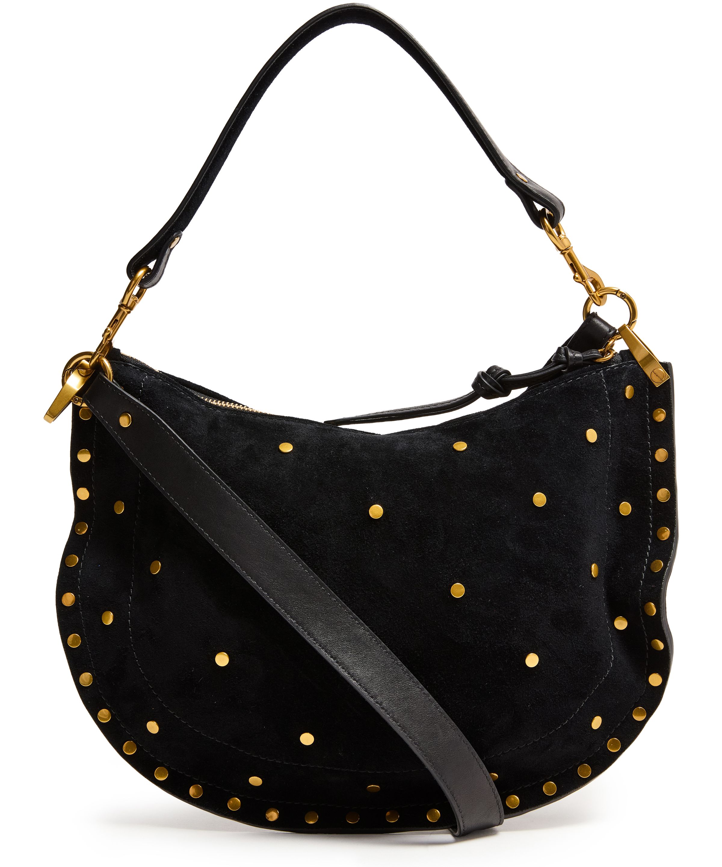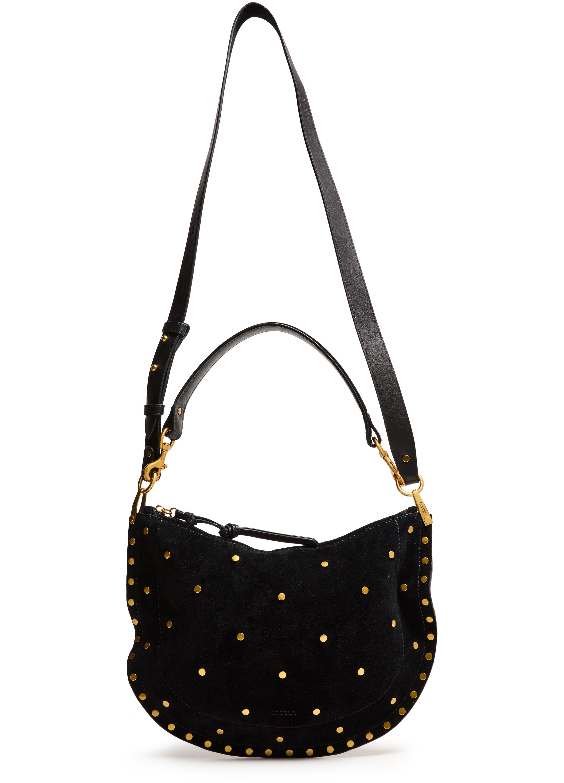 Oskan Soft Zip shoulder bag in suede with studs - Black