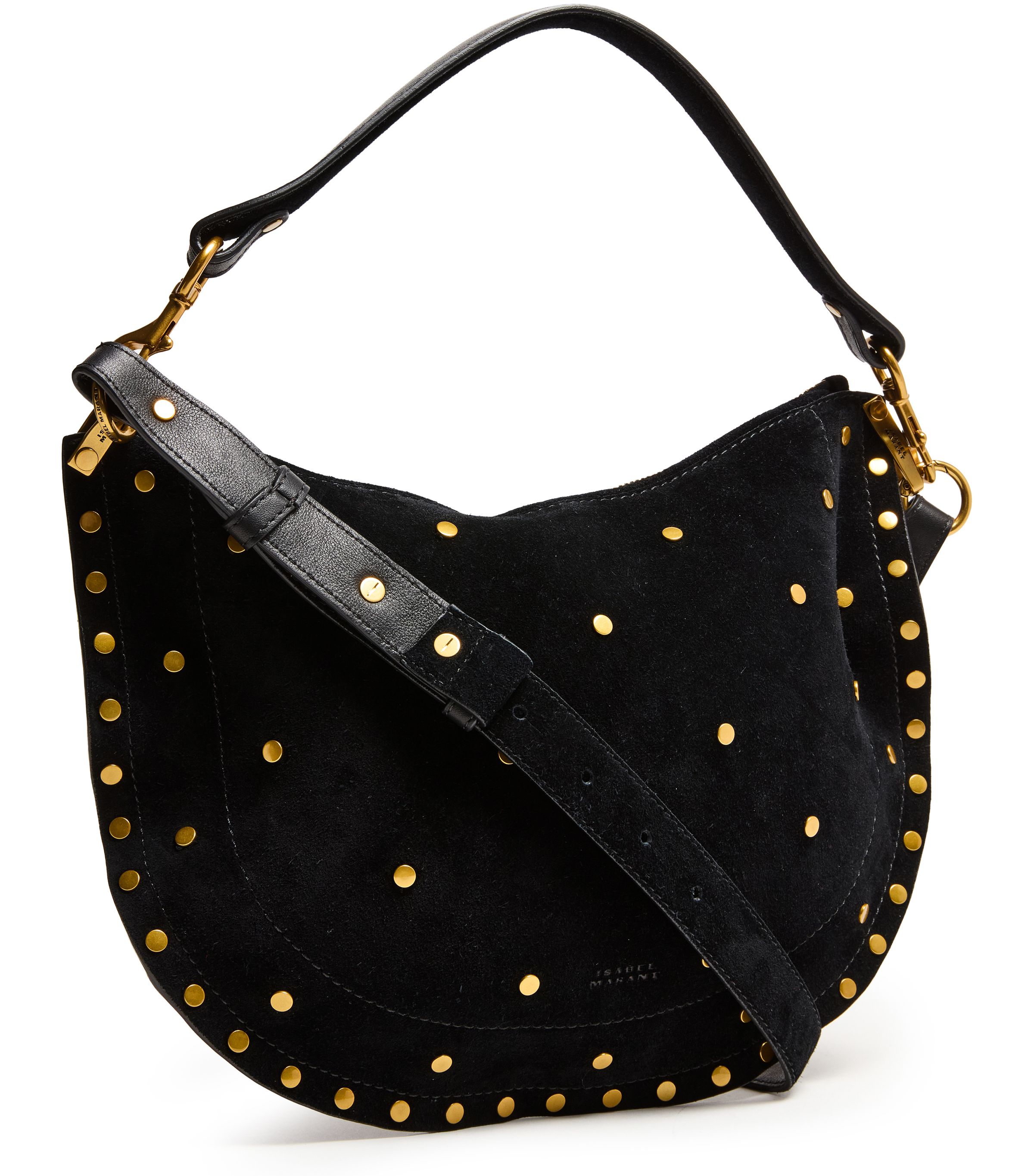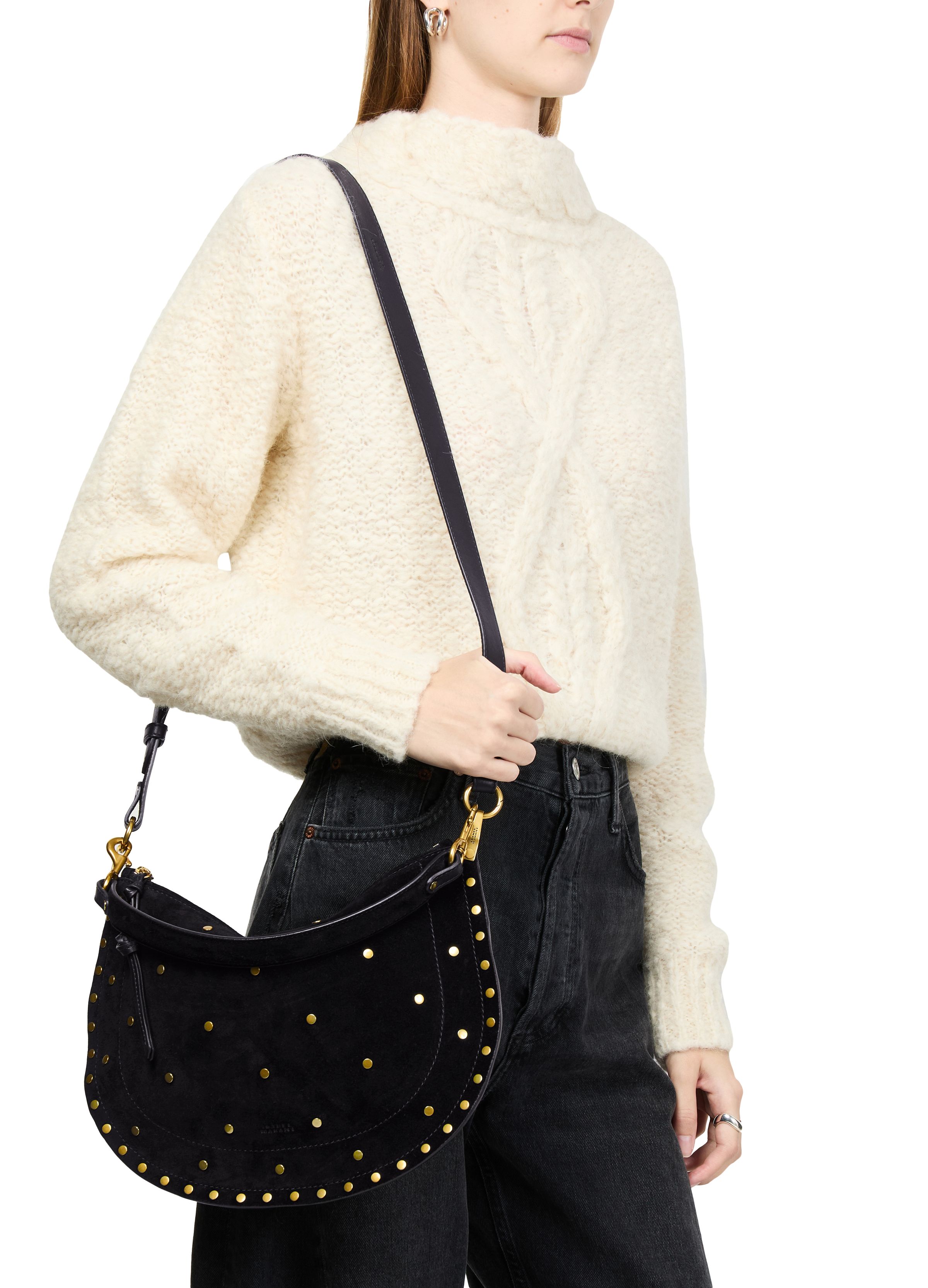 Oskan Soft Zip shoulder bag in suede with studs