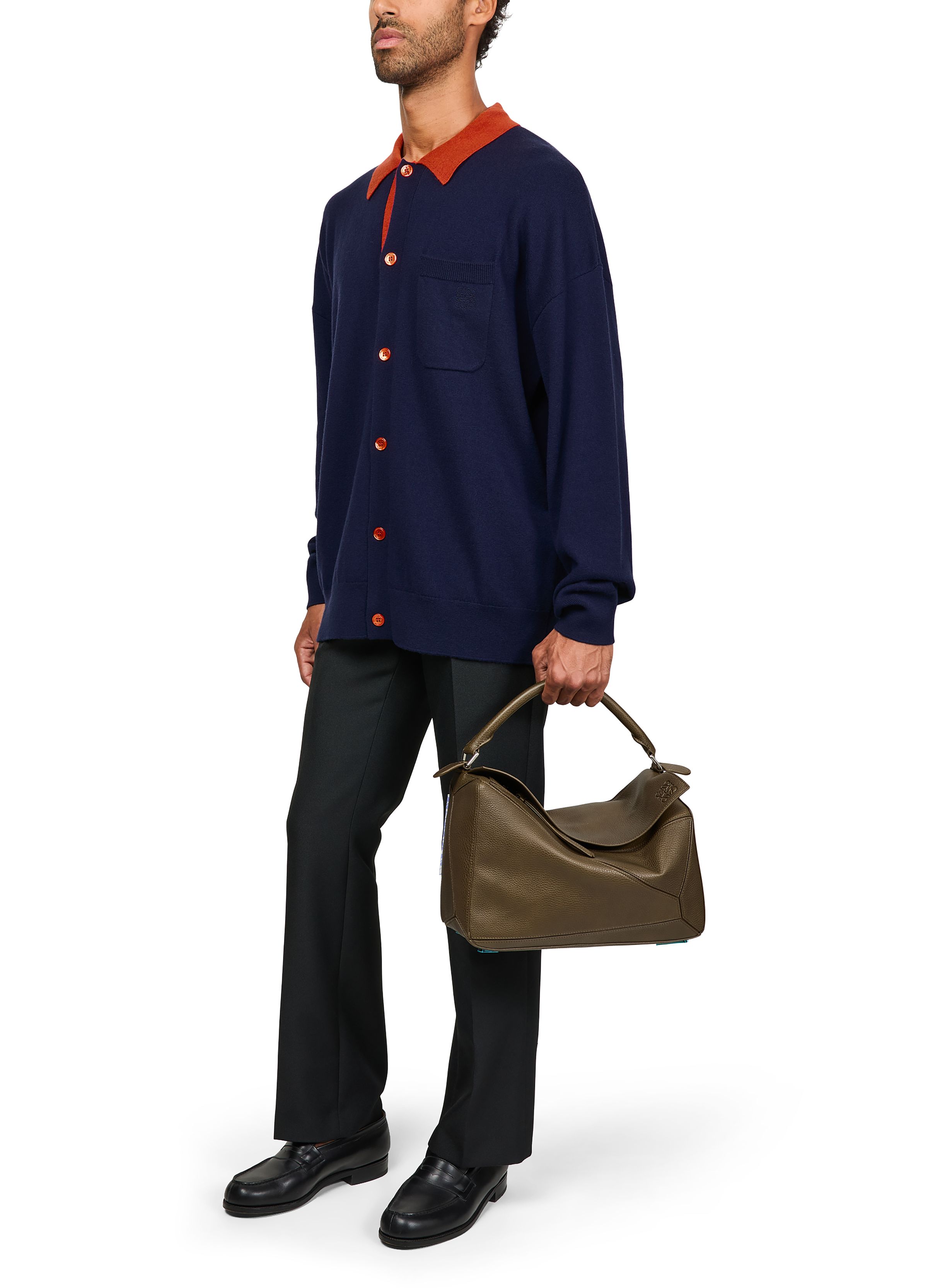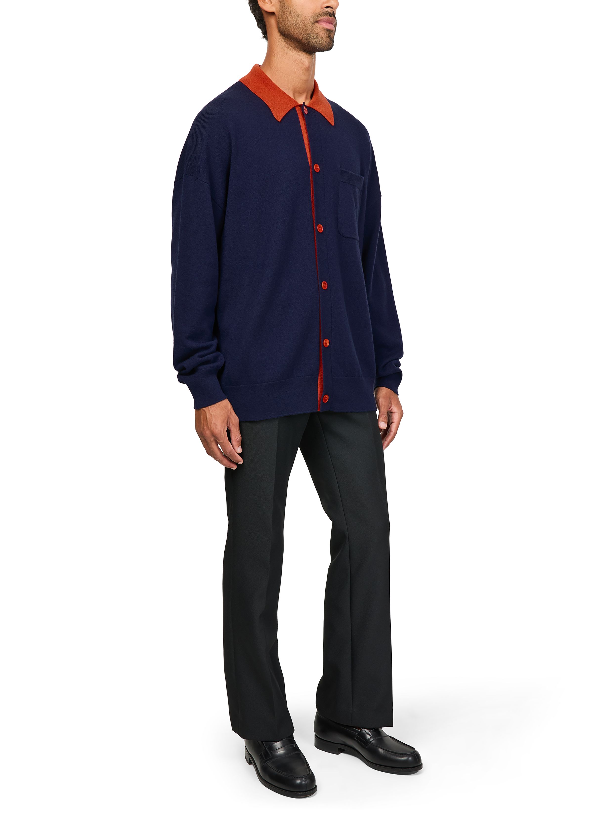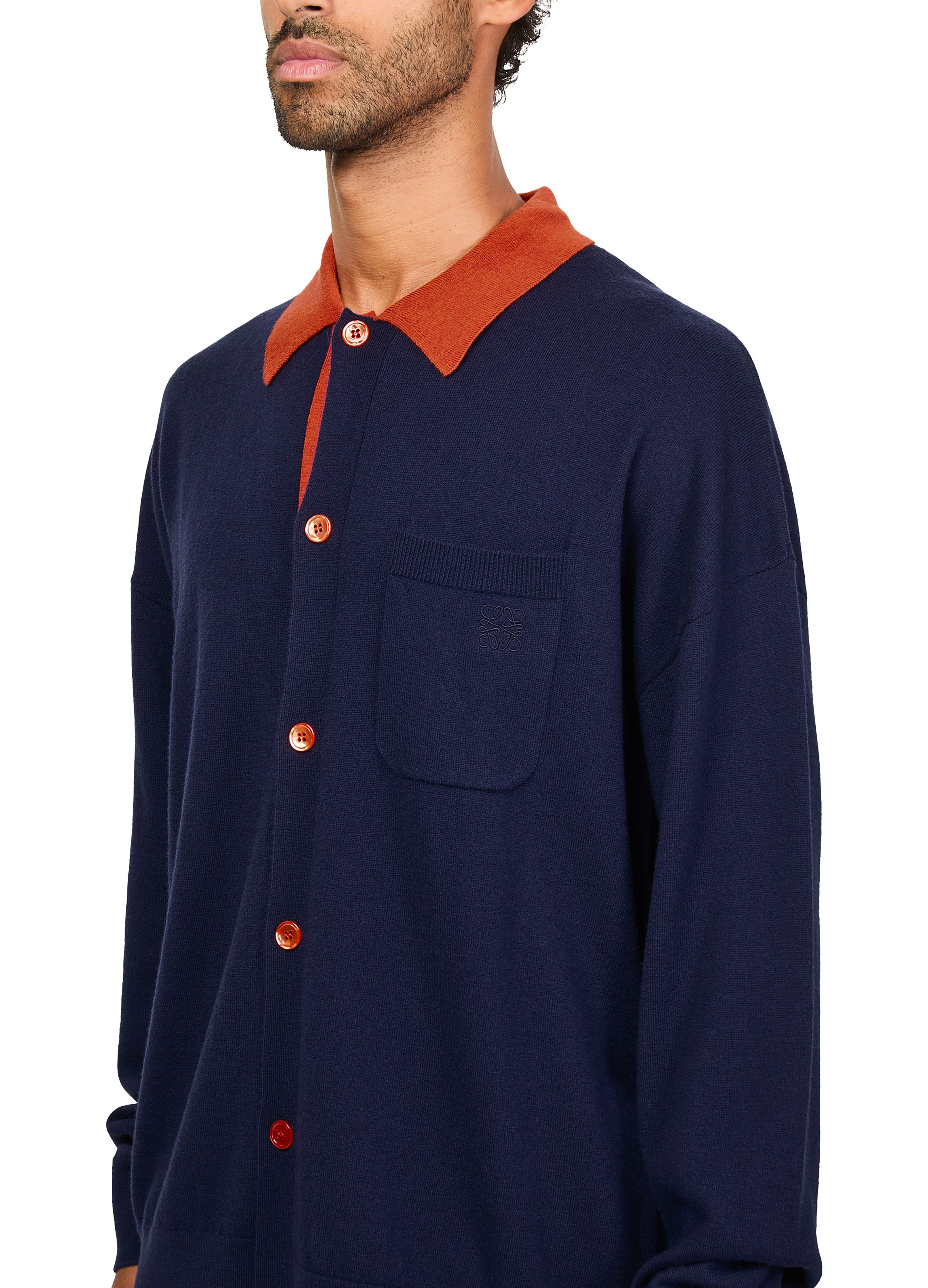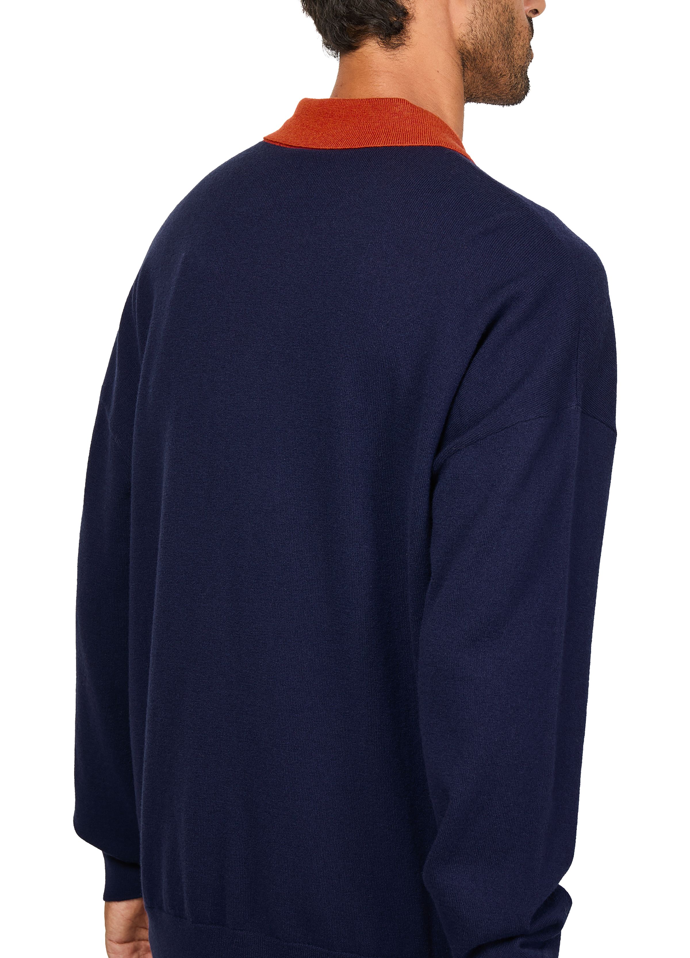 Polo cardigan in wool - navy blue