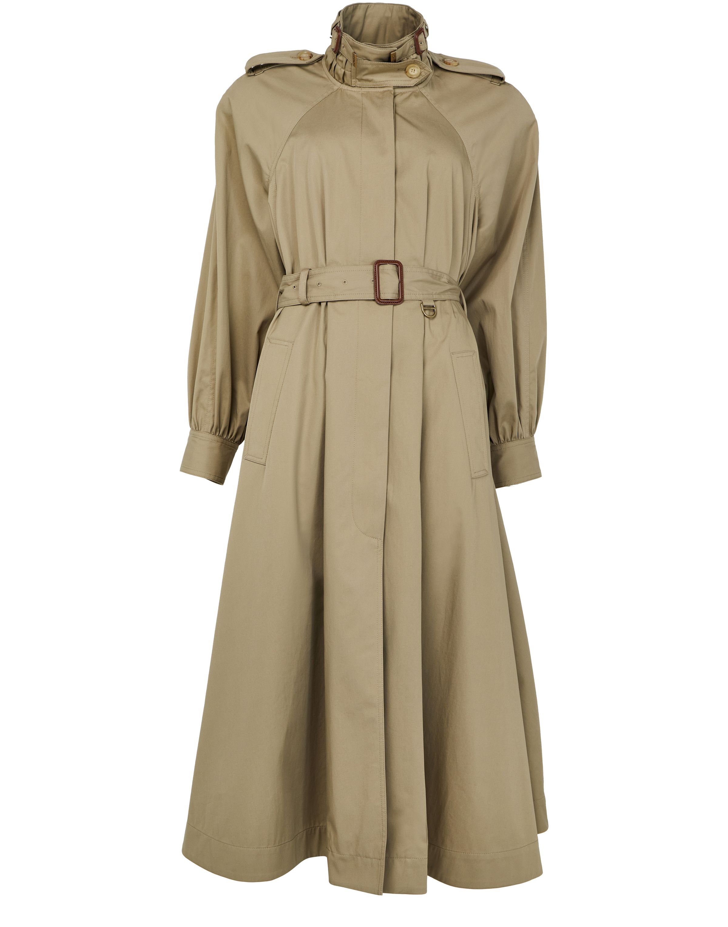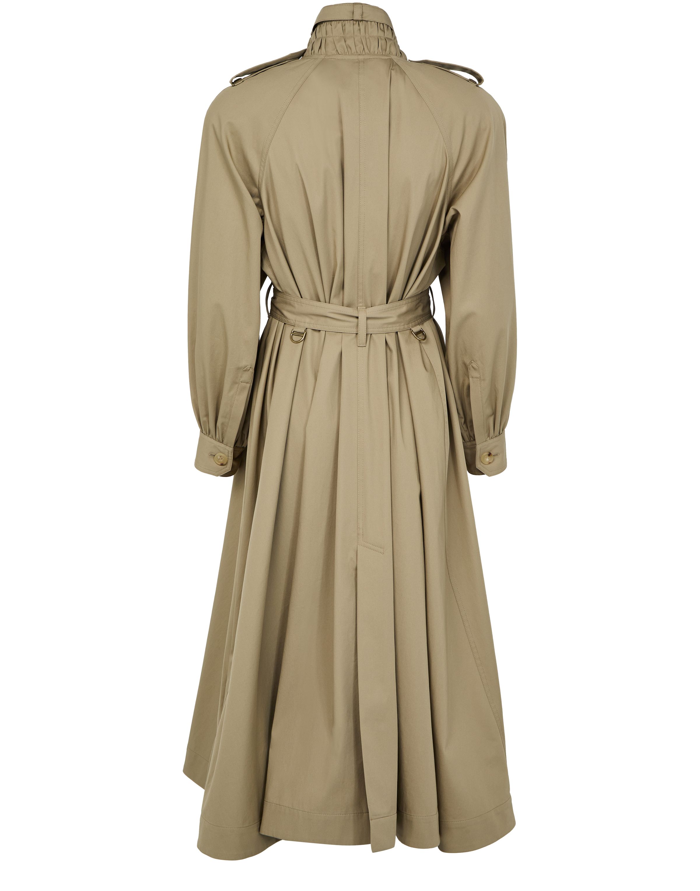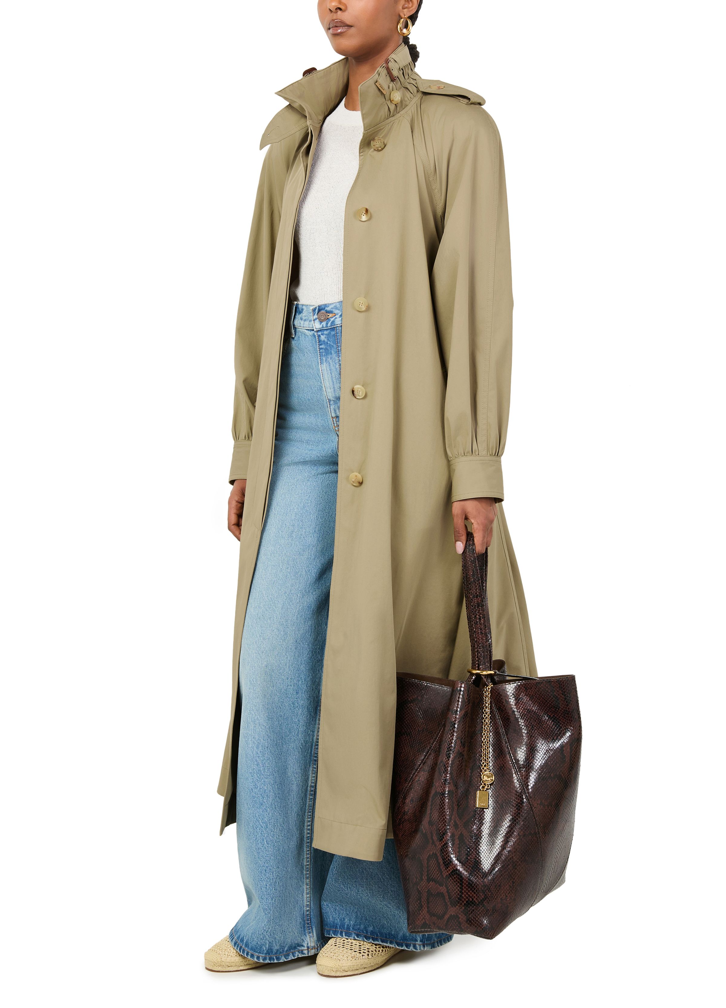 Long trench coat with stand-up collar in cotton gabardine