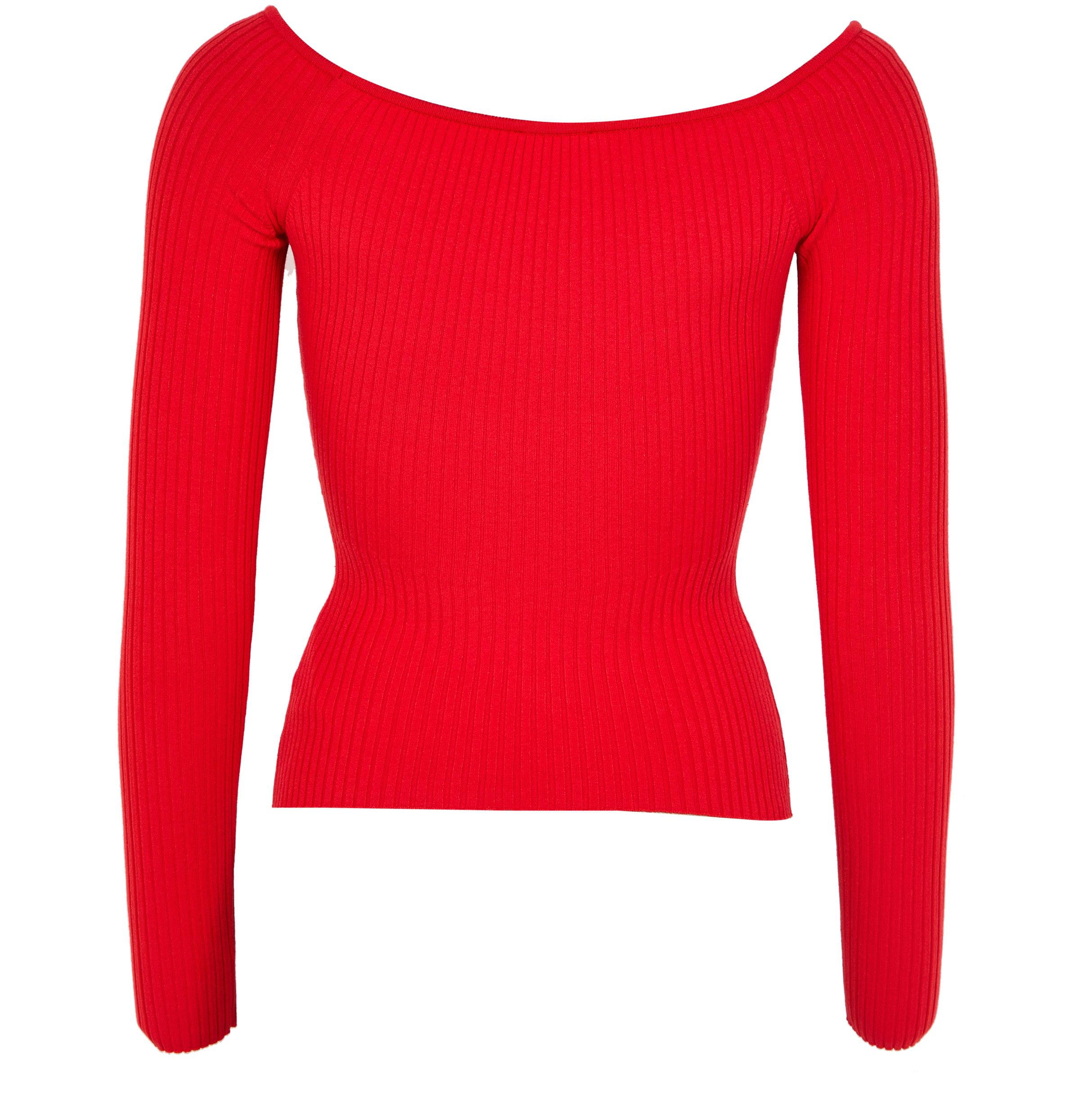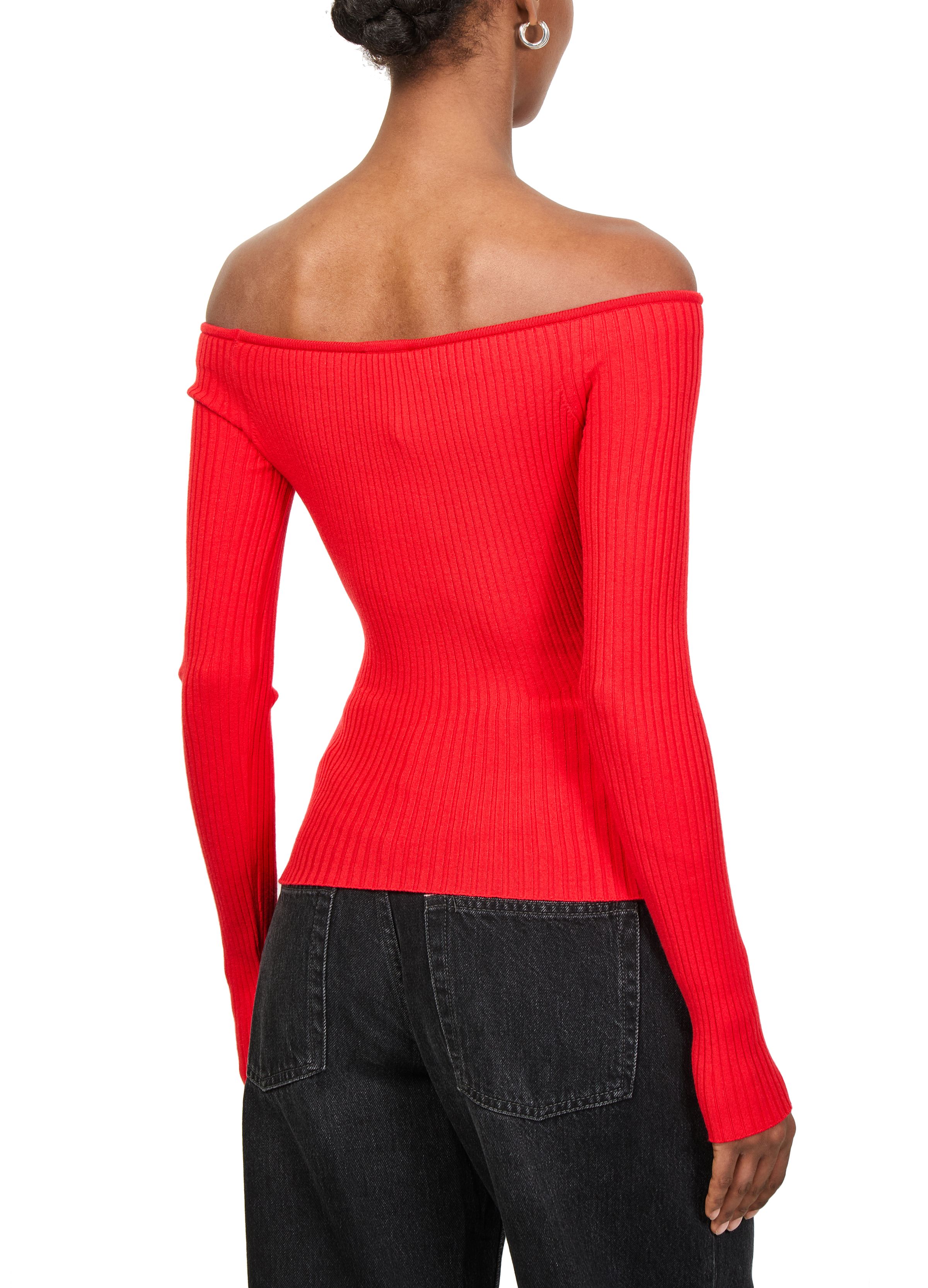 Off shoulder rib knit top - Red