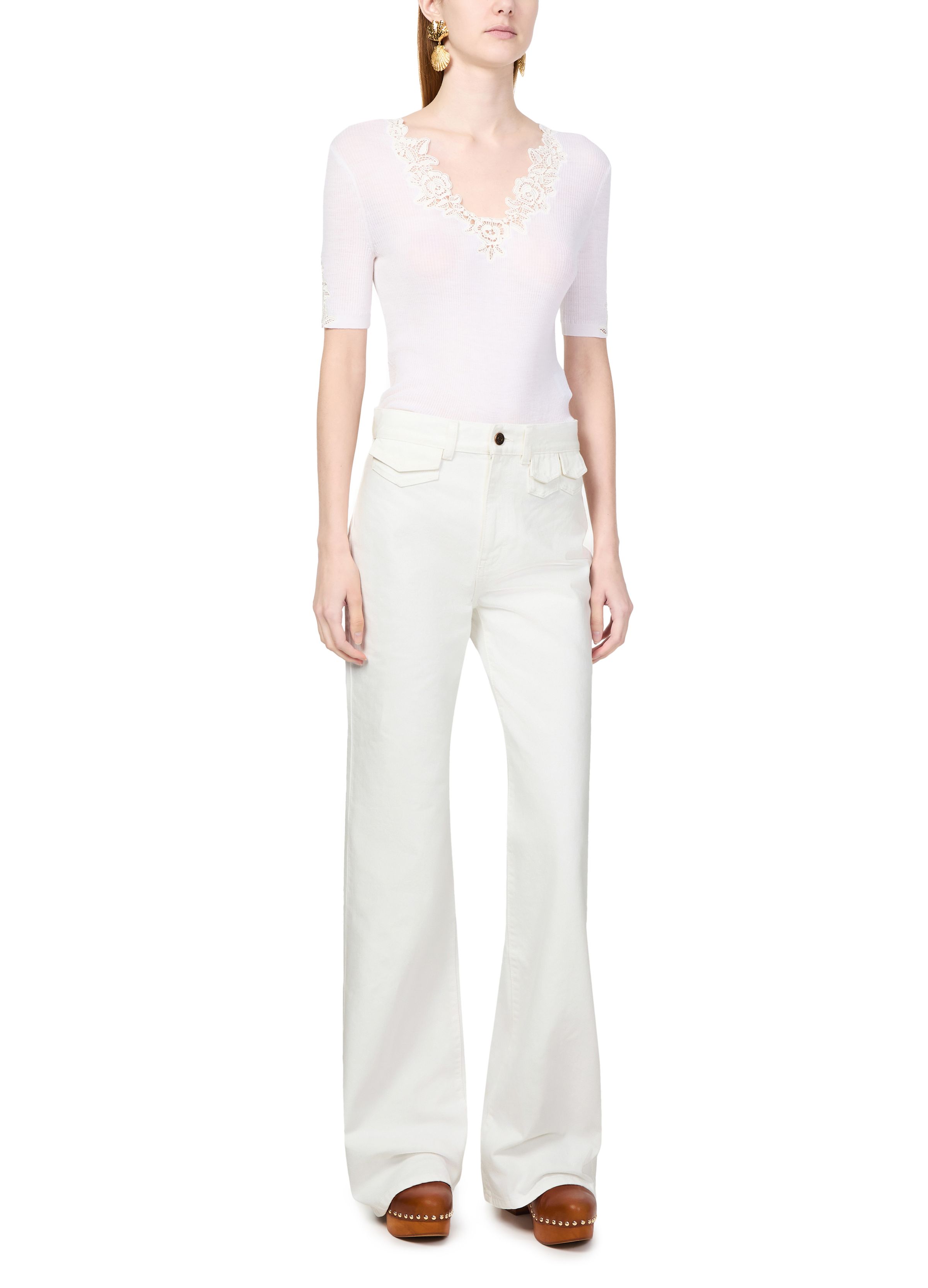 High-waisted flared denim jeans - white