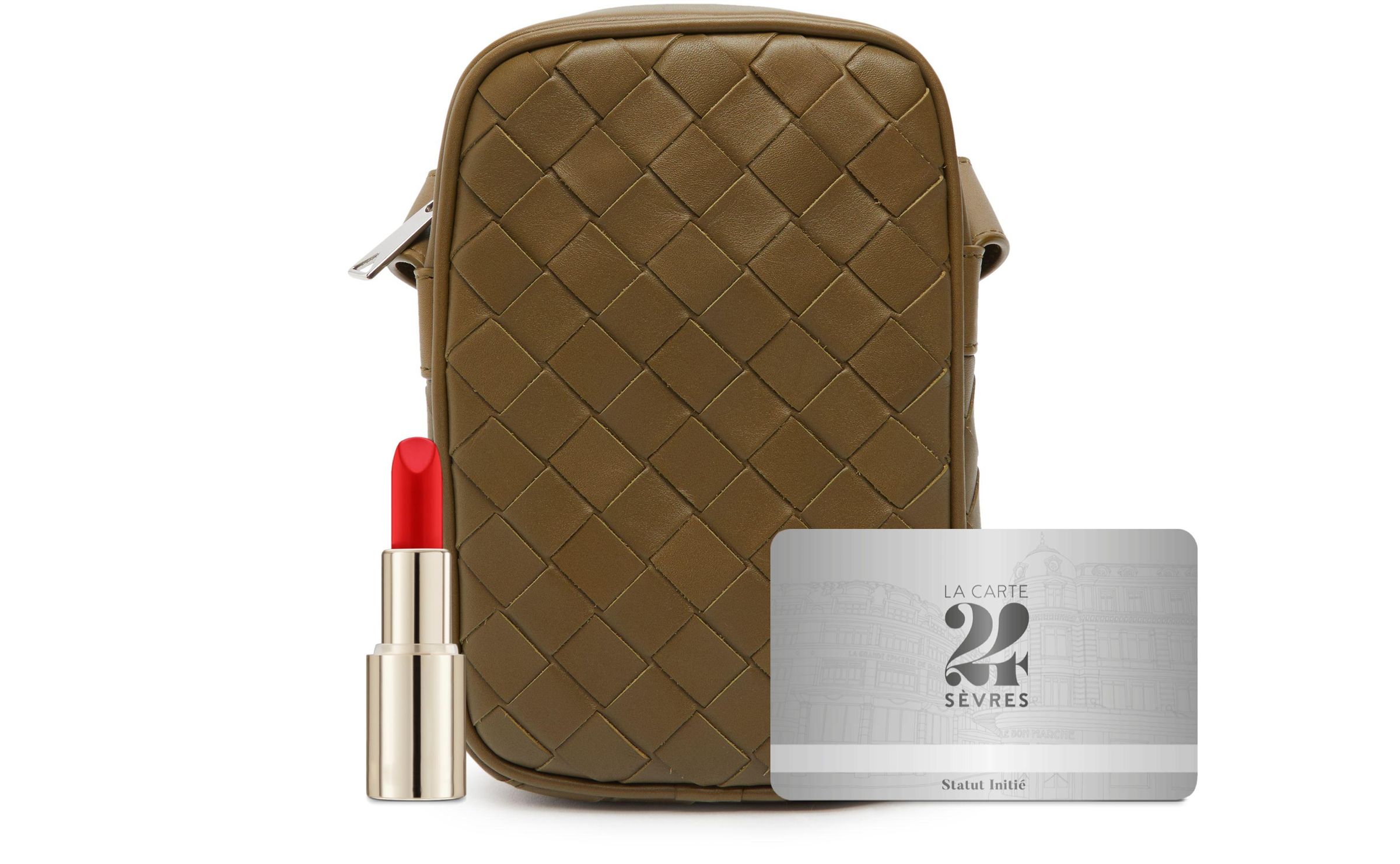 Intrecciato zippered phone pouch