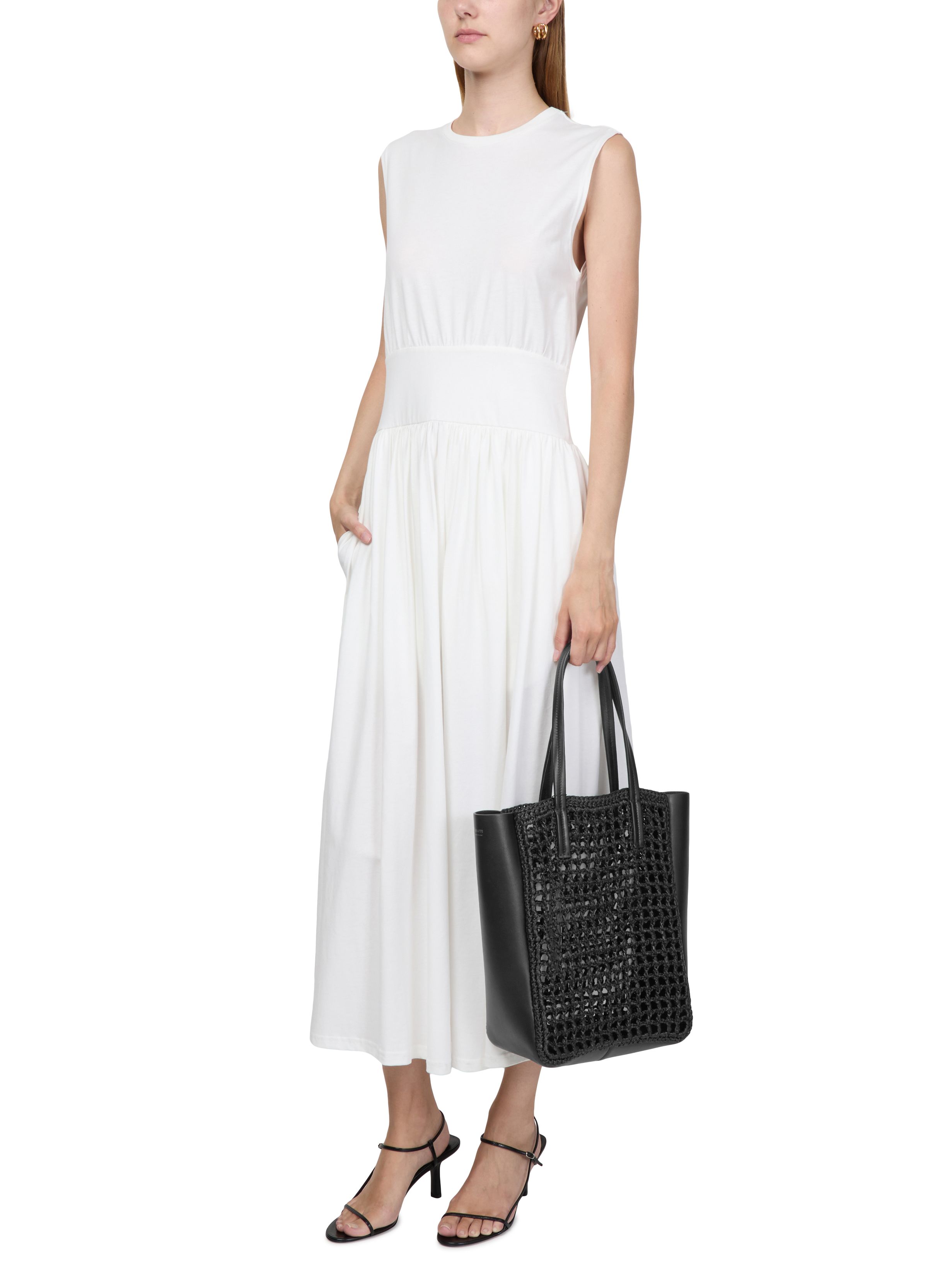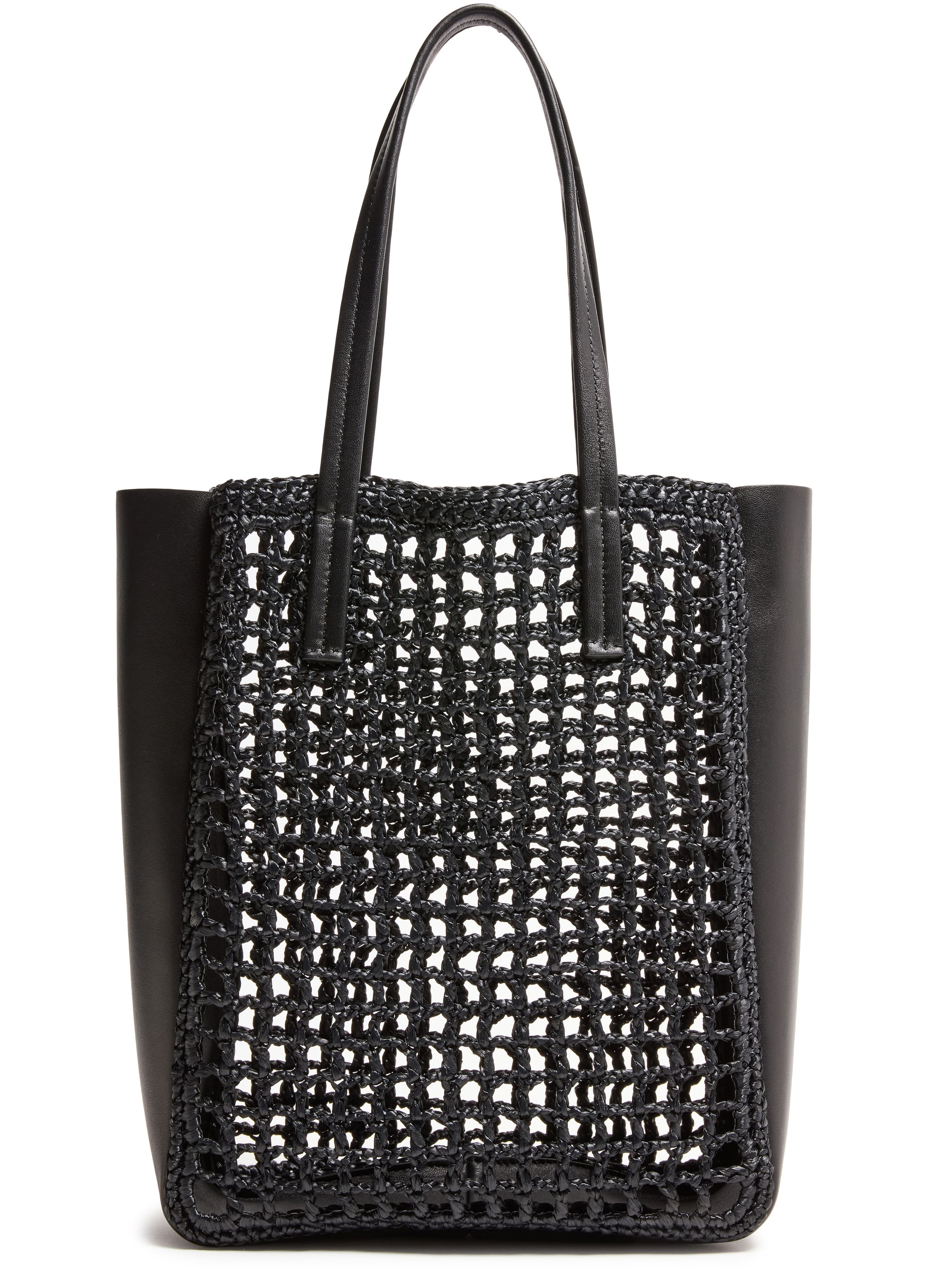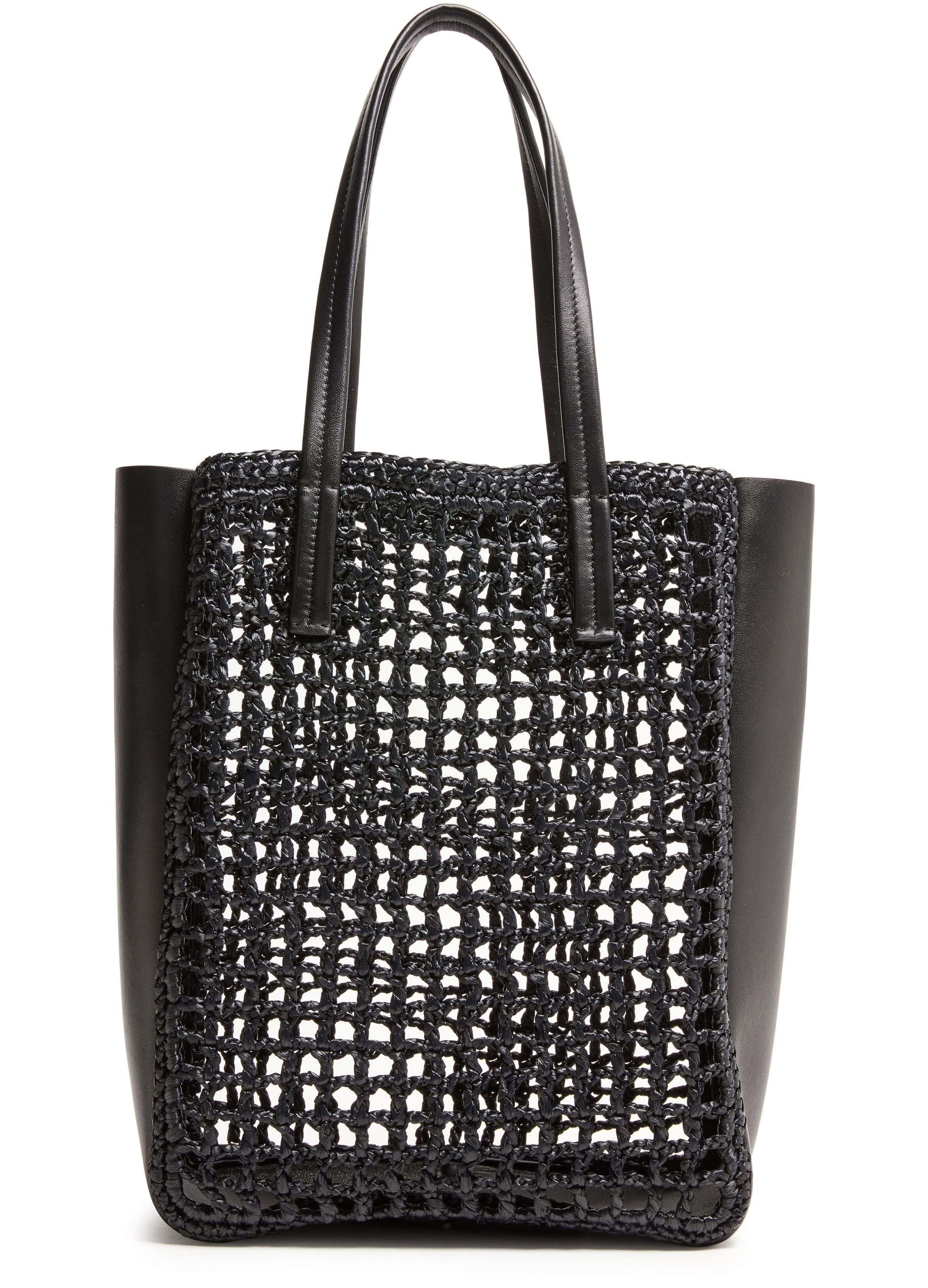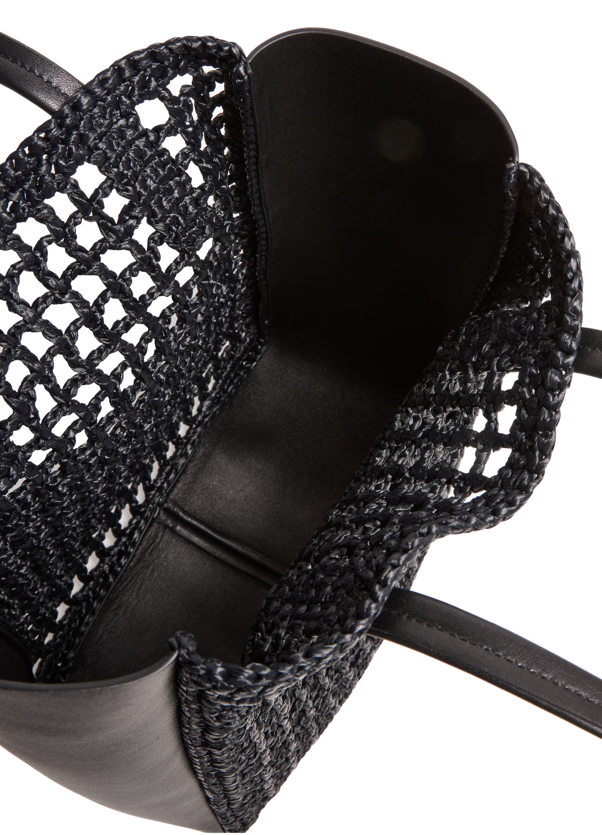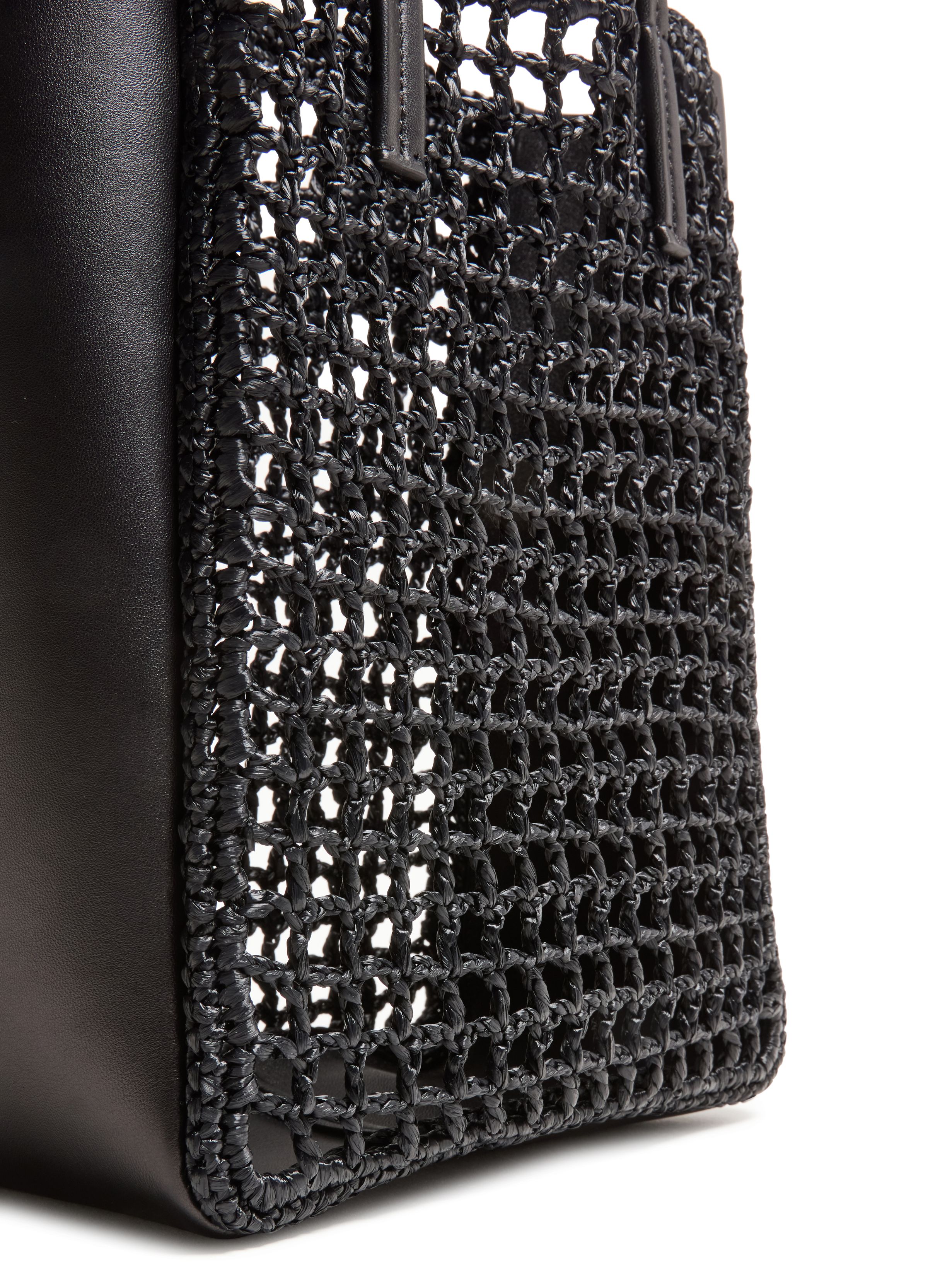 Zoe small leather raffia tote bag - Black