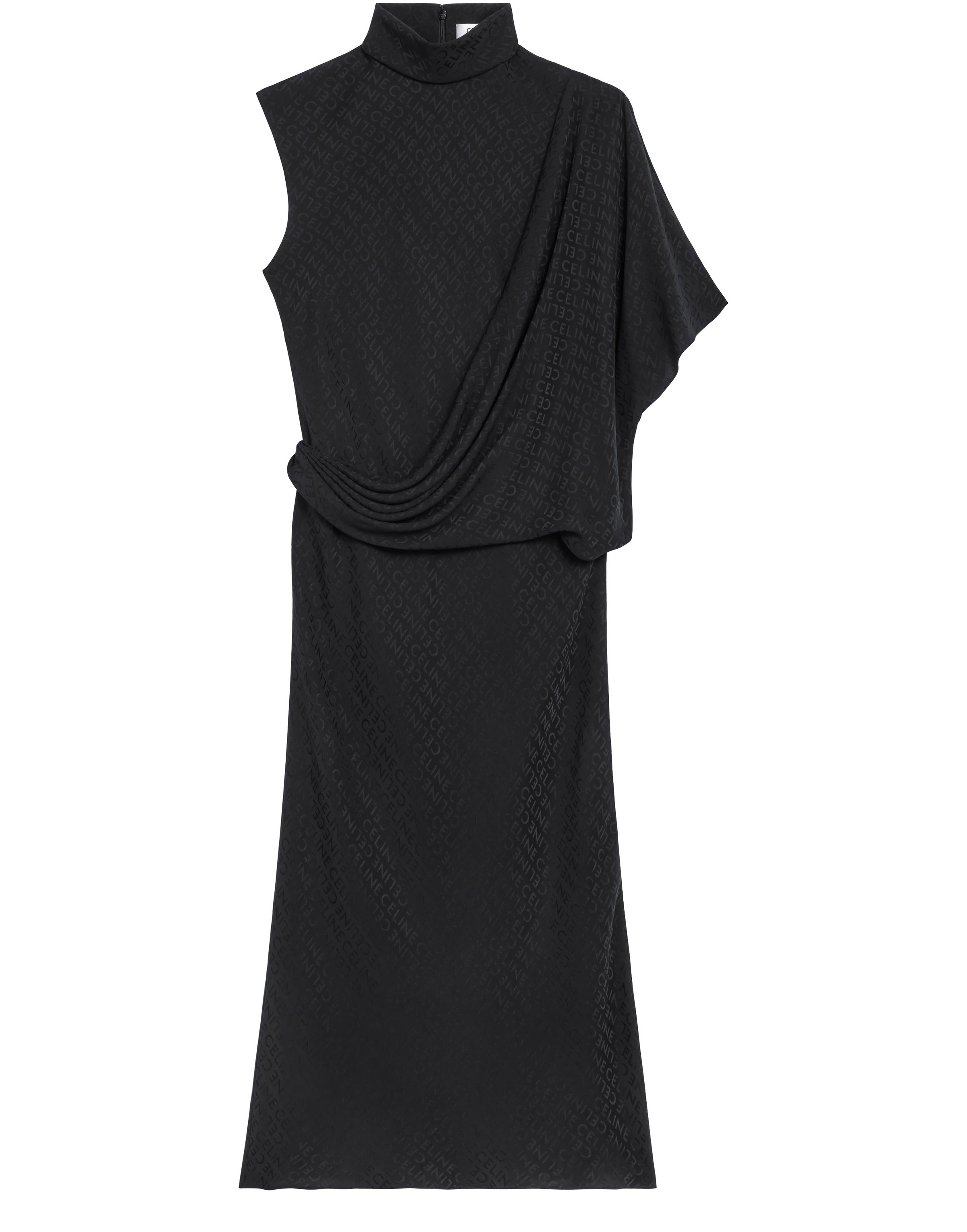 Matte and Glossy Silk Loose Draped Dress - Black
