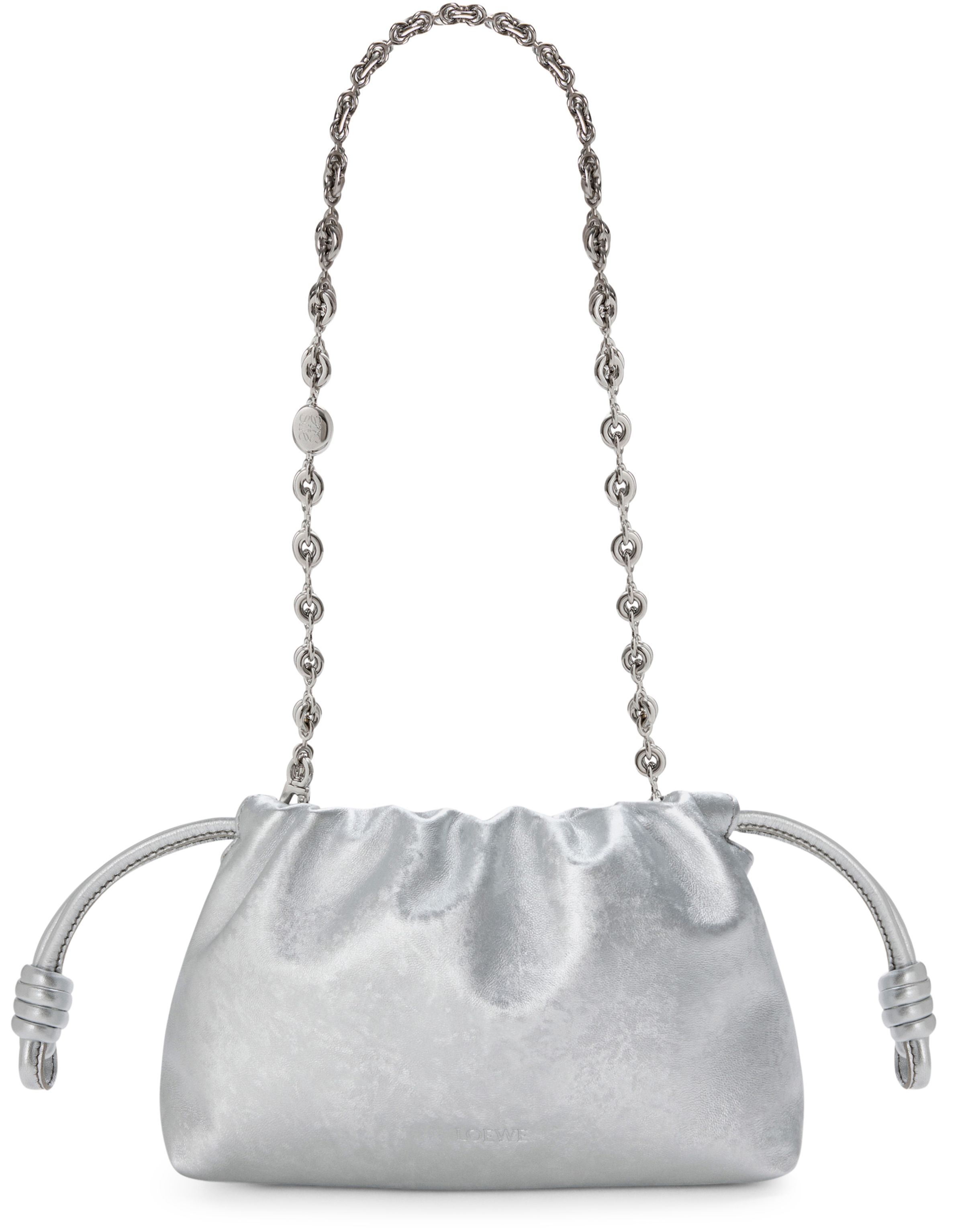 Mini Flamenco Purse in moiré print calfskin - Silver