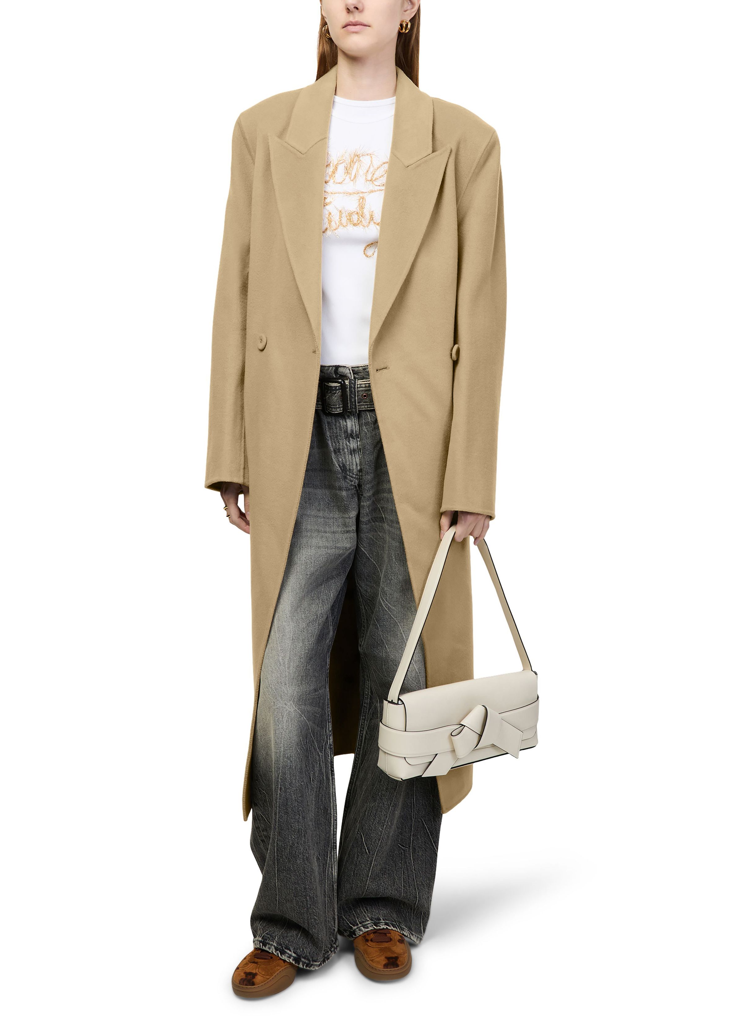 Long belted coat in cashmere blend - Beige