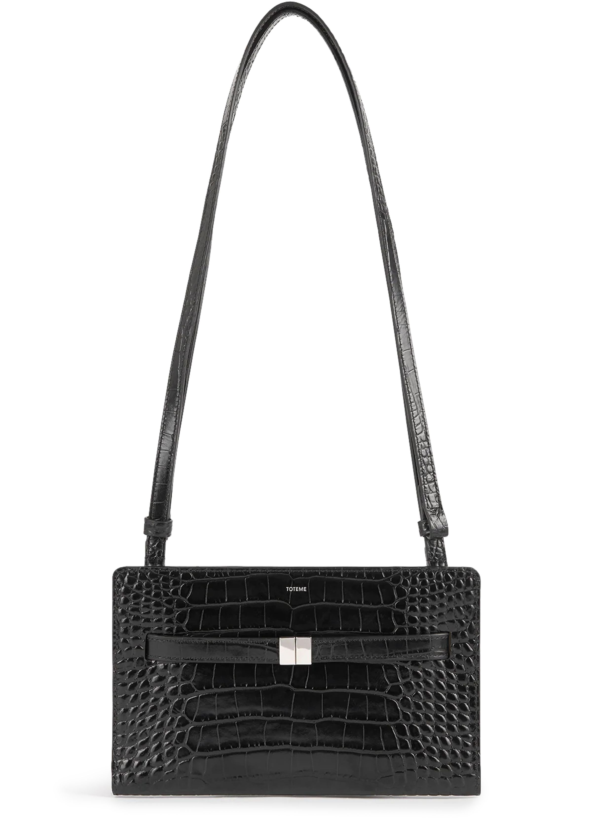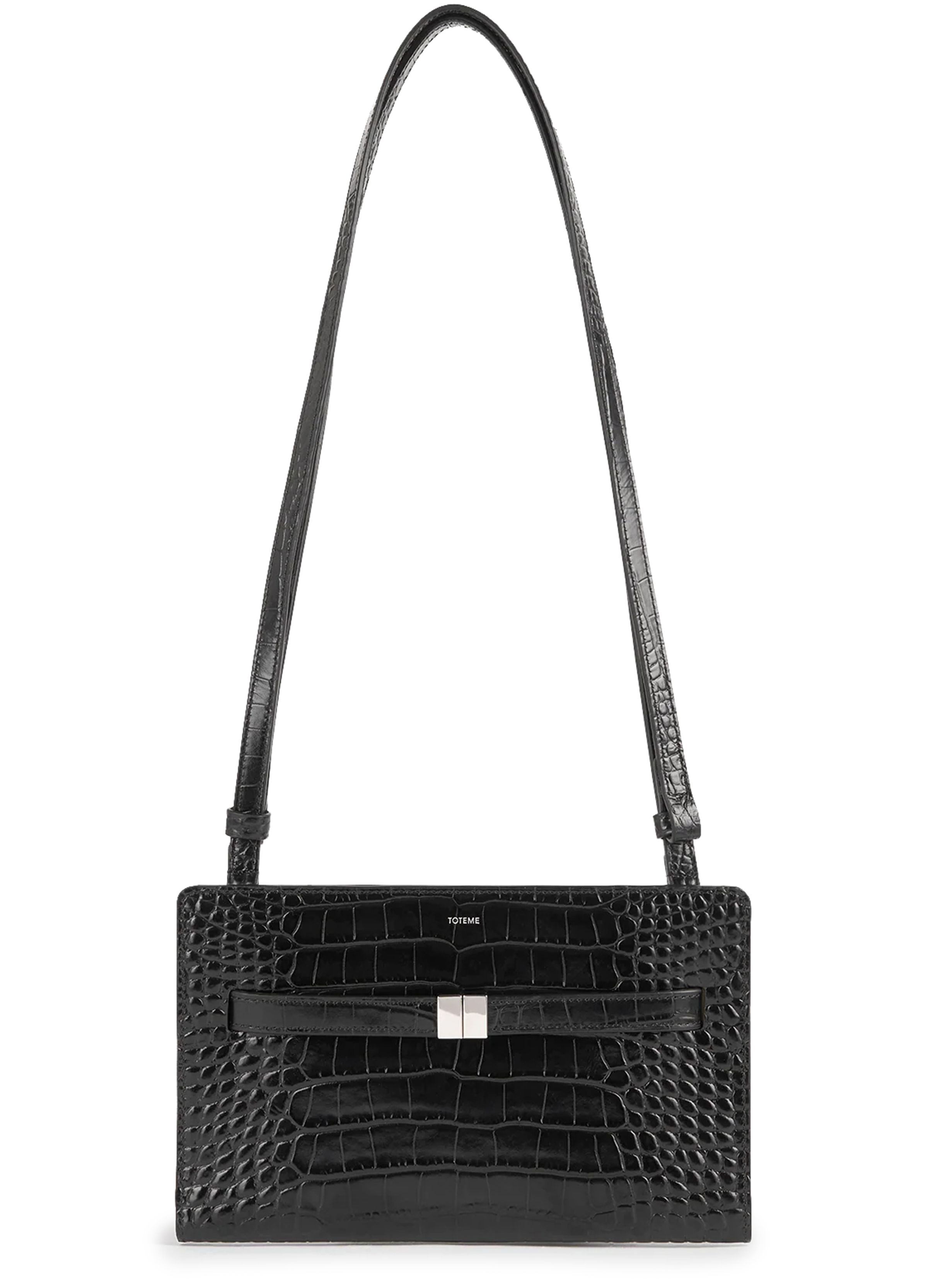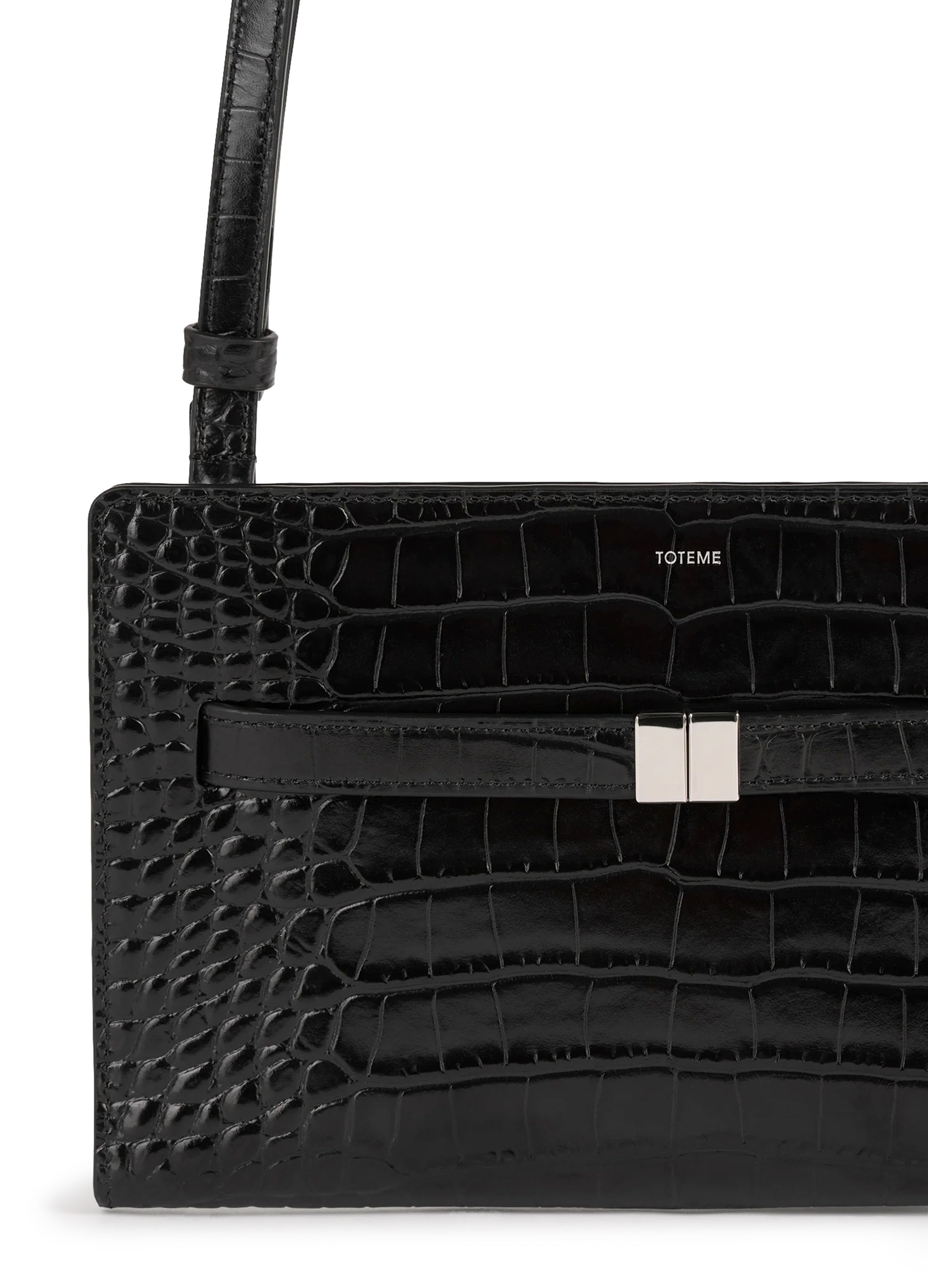 Croco print leather crossbody bag - Black