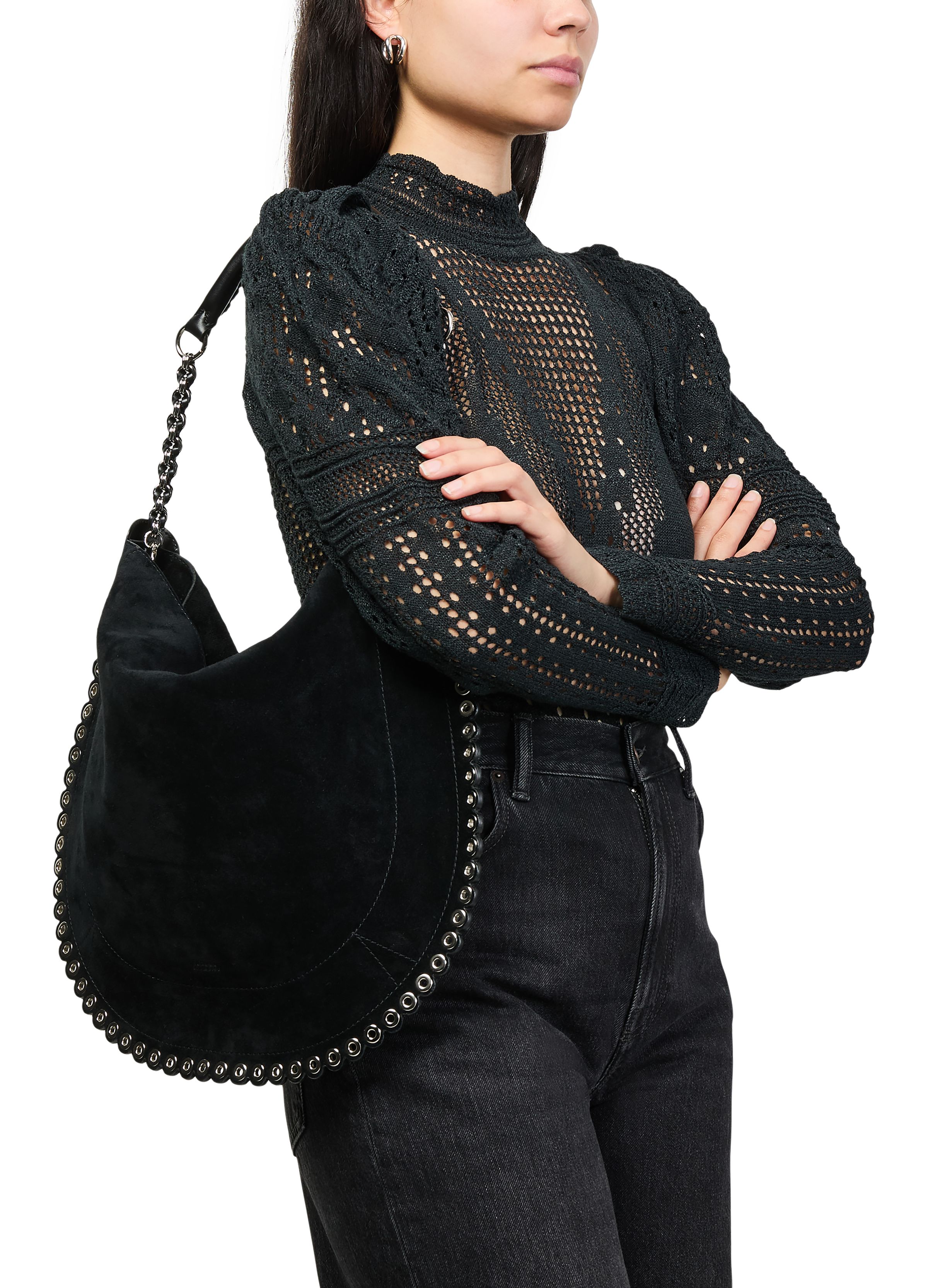 Oskan Hobo Soft shoulder bag with perforated studs - Black