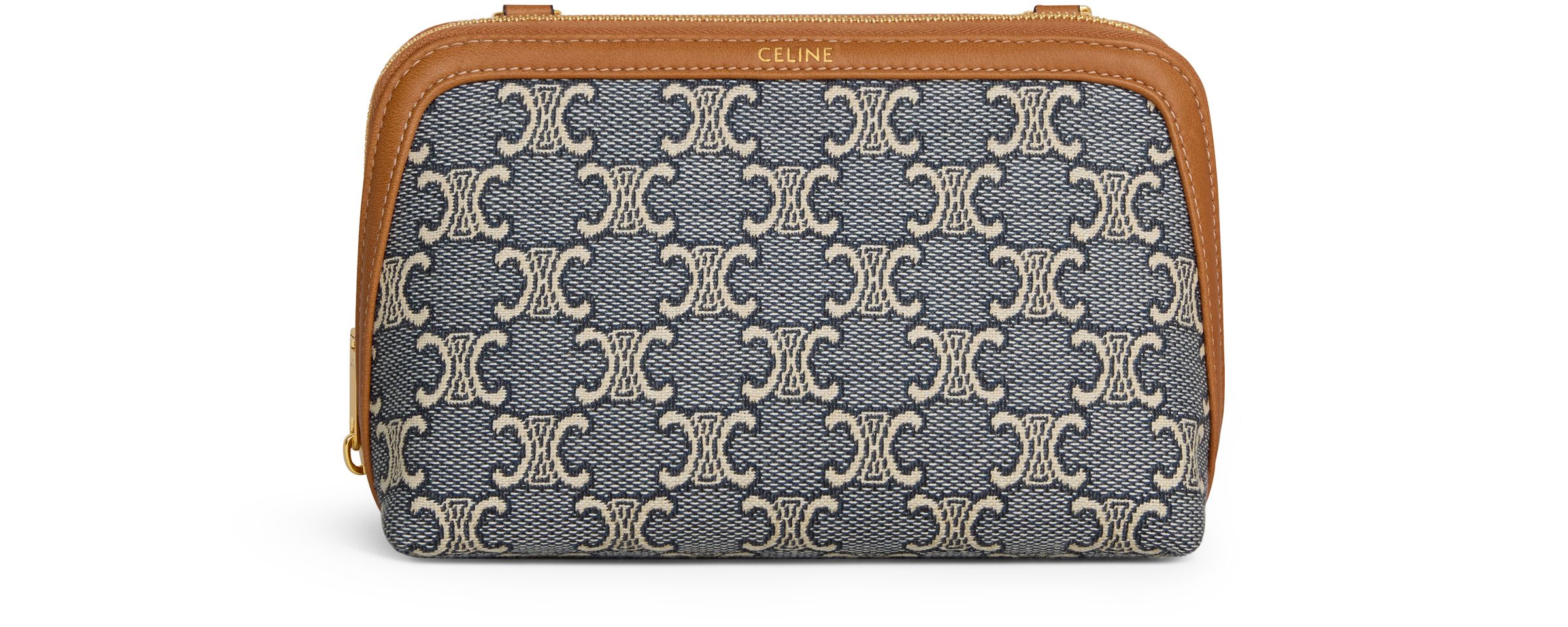 Chain clutch with all-over jacquard Triomphe pattern - navy blue