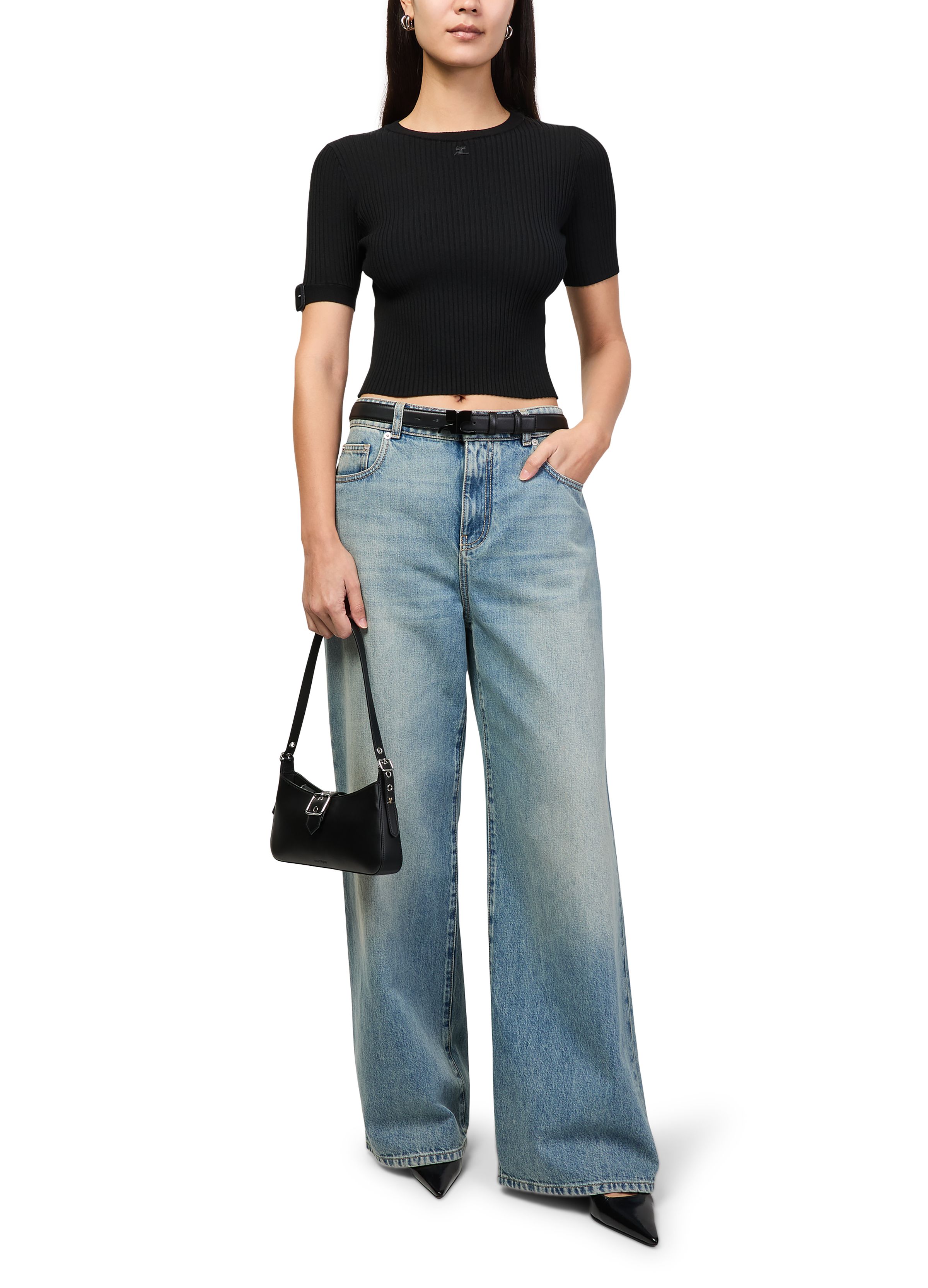 Buckle rib knit top - Black
