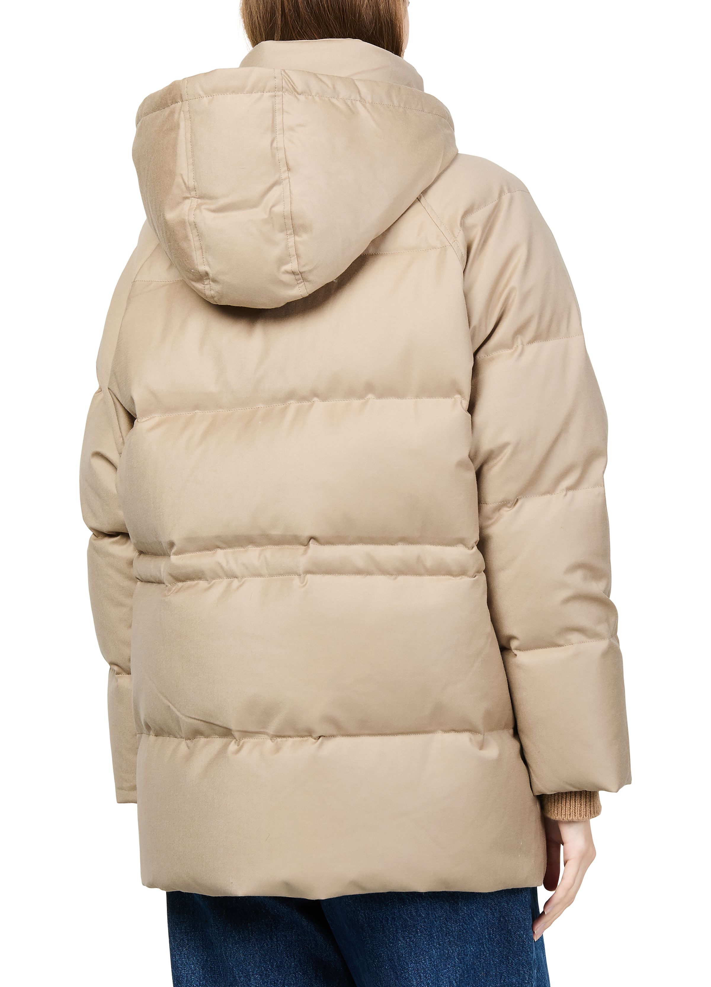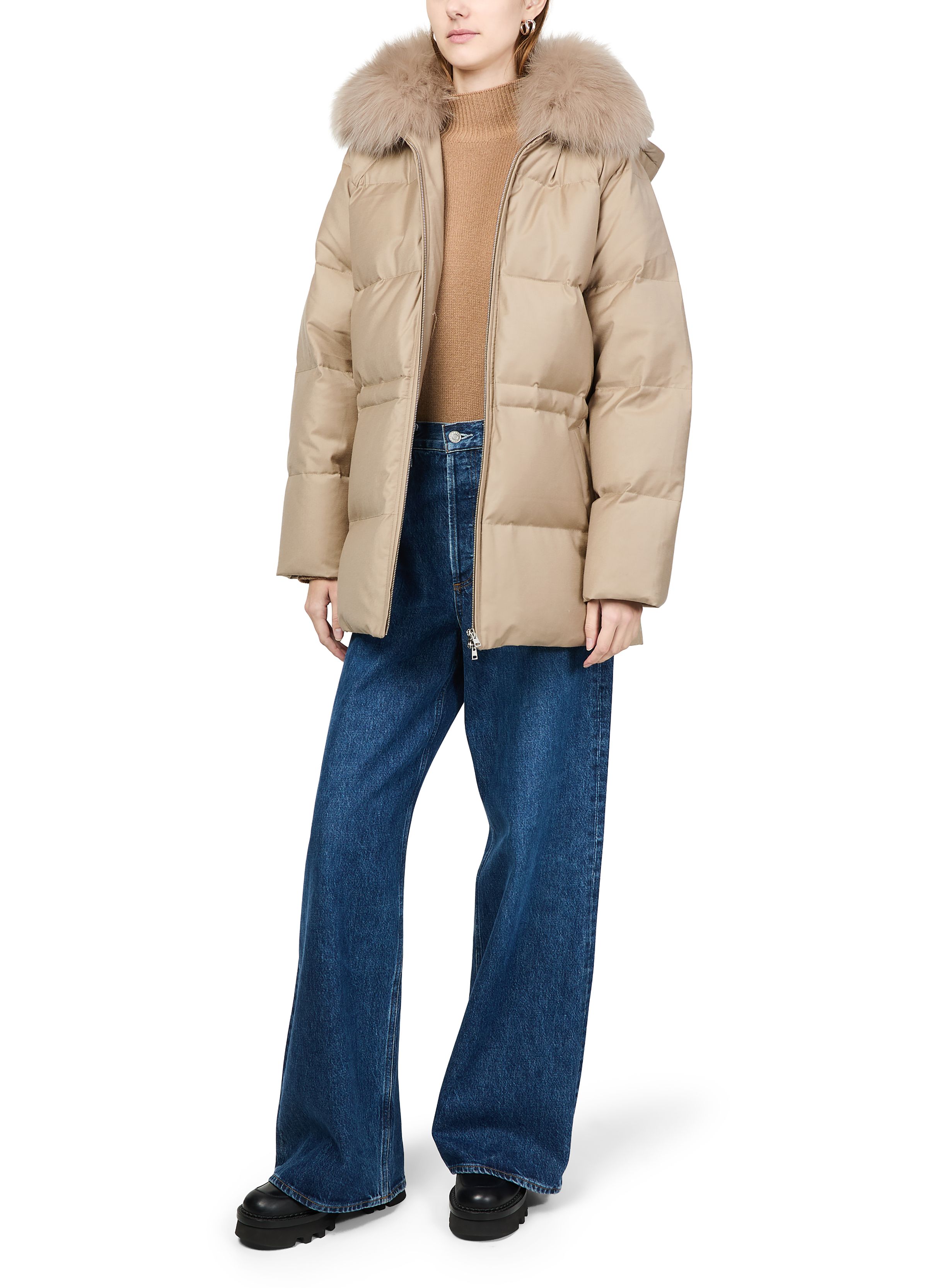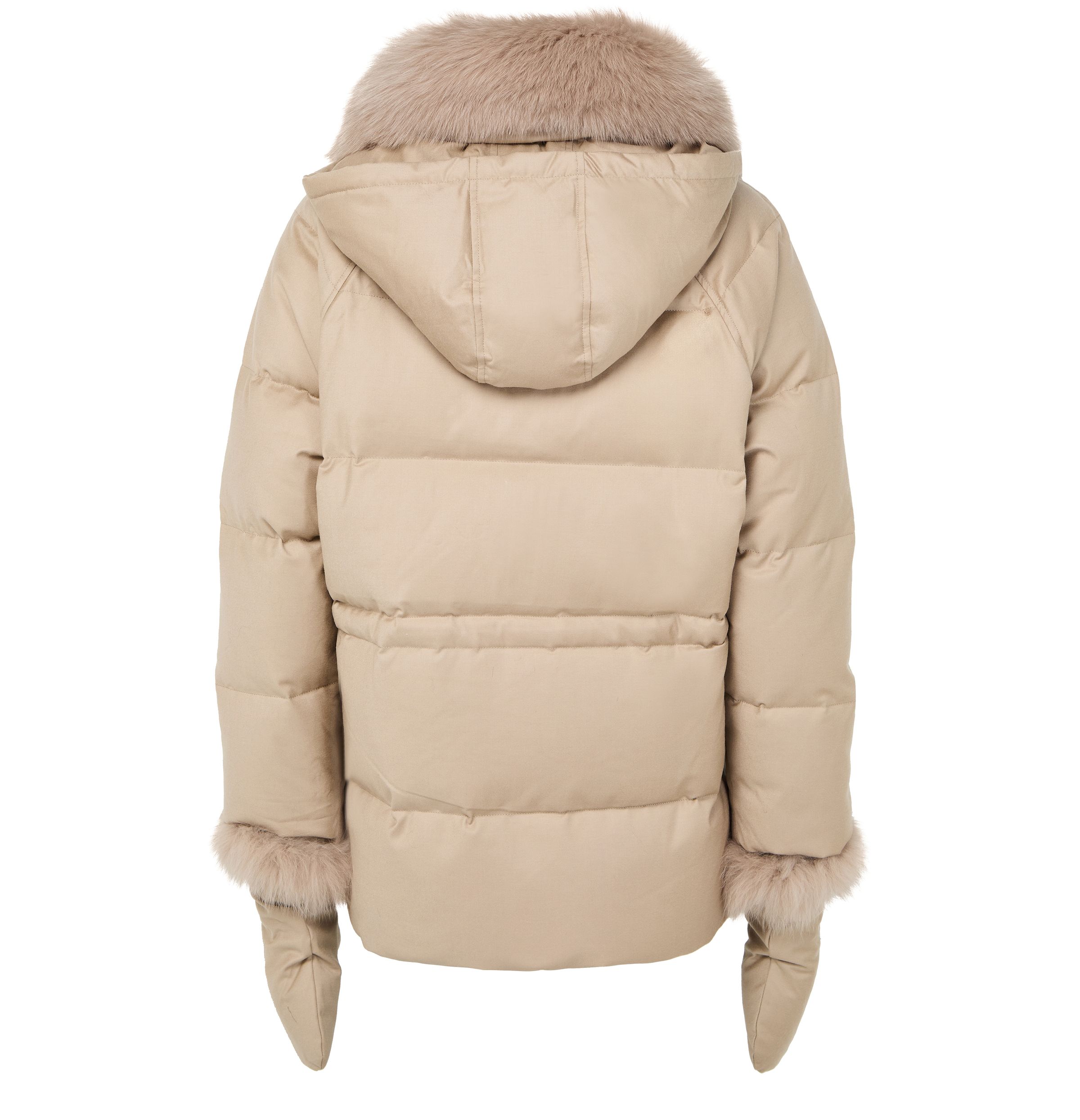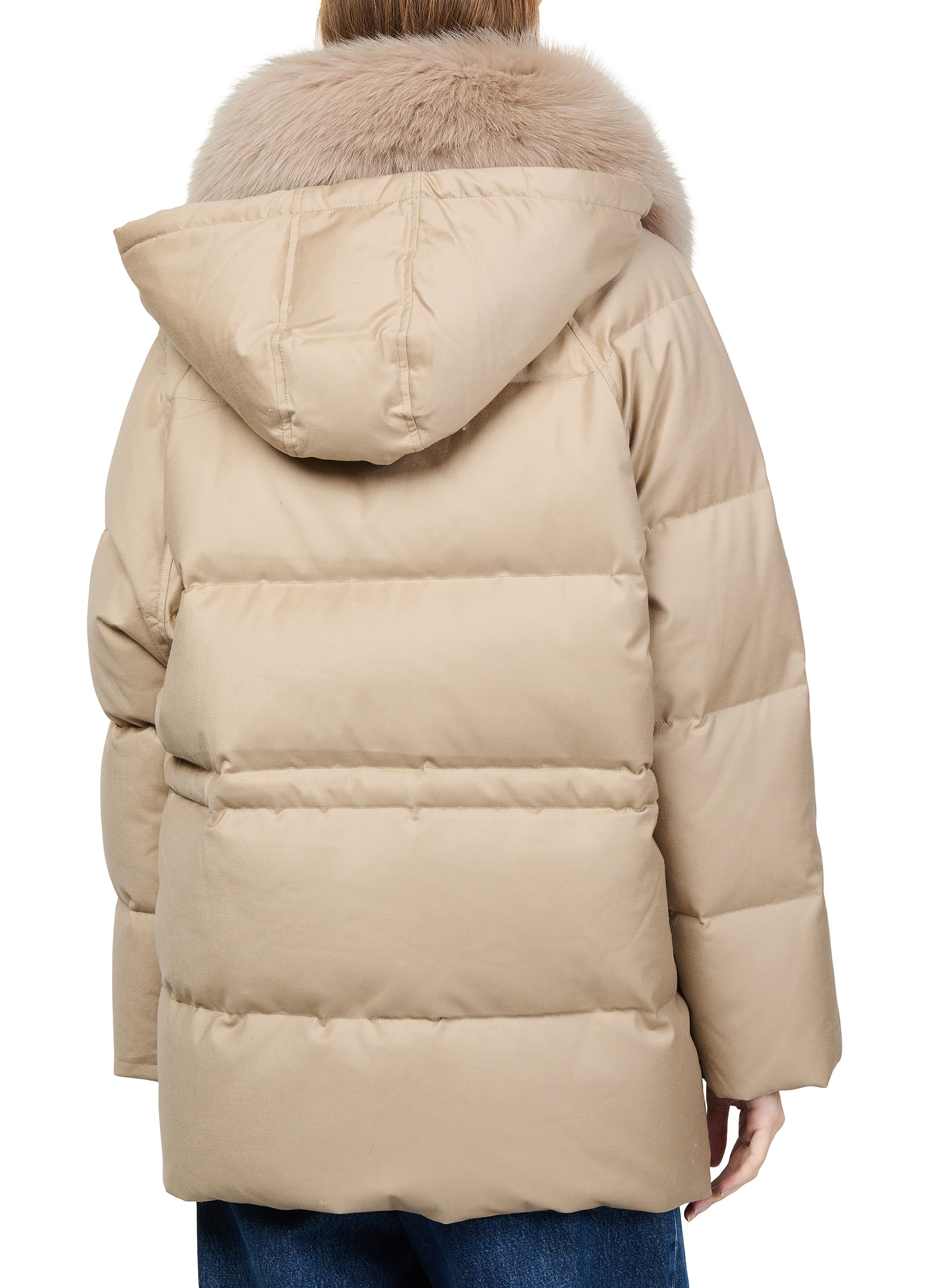 Puffer jacket with a fox fur collar - Beige